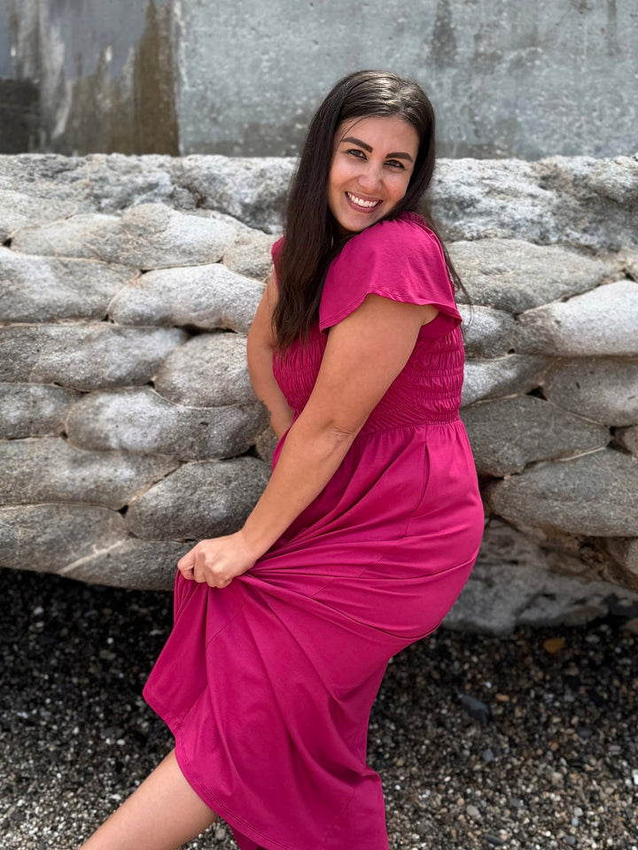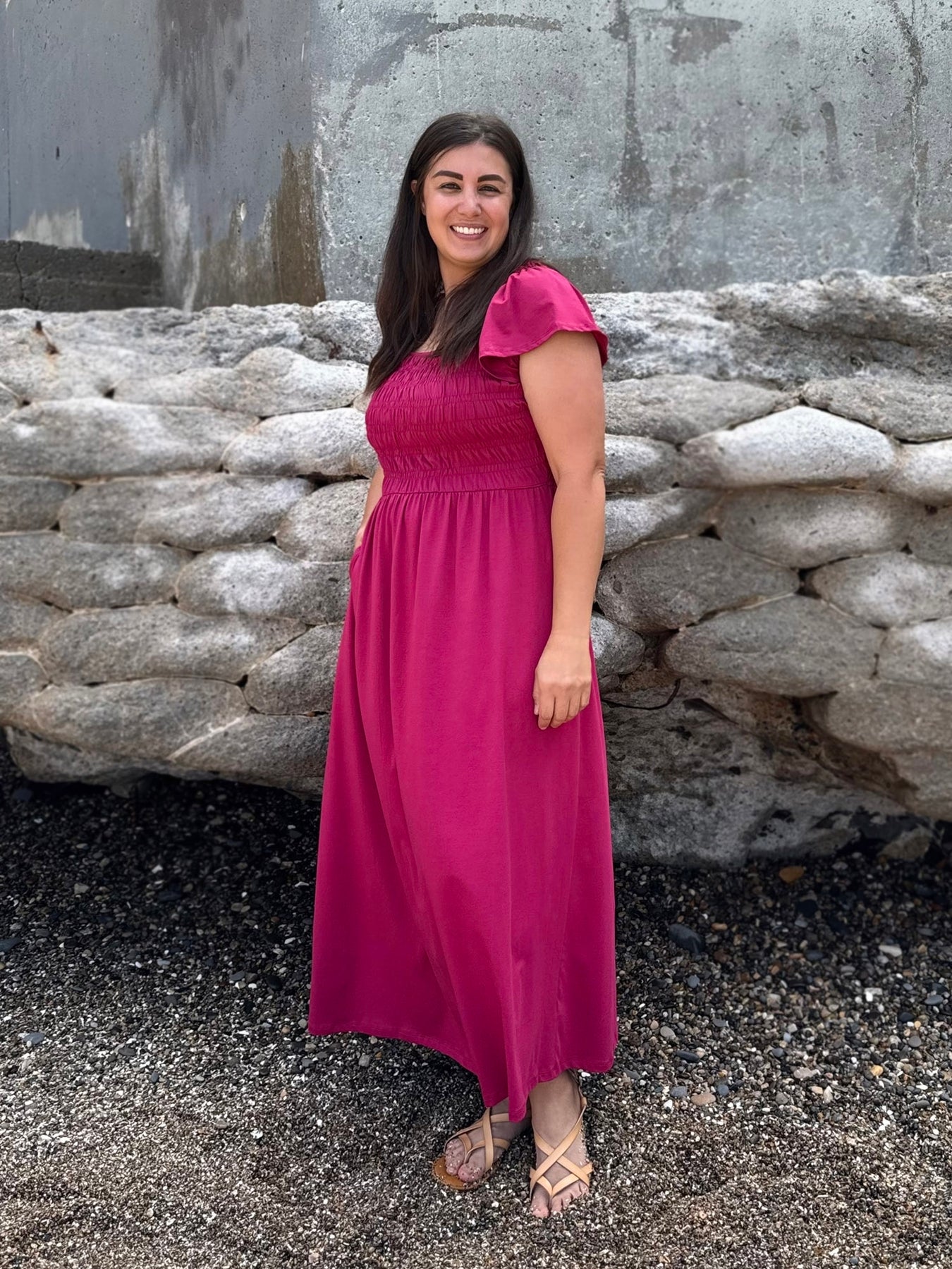 • This dress works for every height. It's a true maxi dress on a 5'0" woman, and a midi length on 6'0"