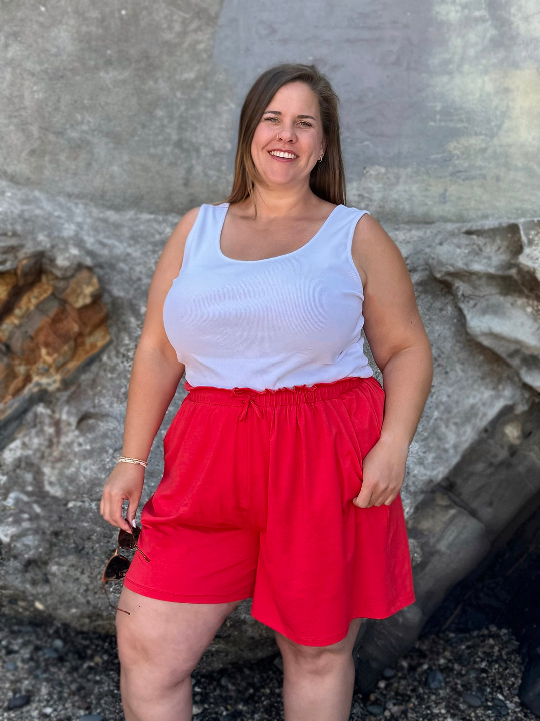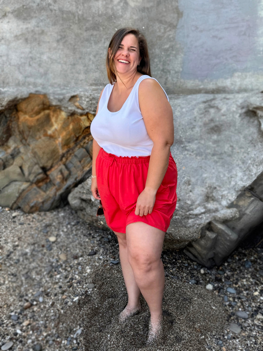 Flowy paper bag shorts with flat front pockets. The high quality fabric makes these as soft as pajamas, and the inseam work for every occasion.