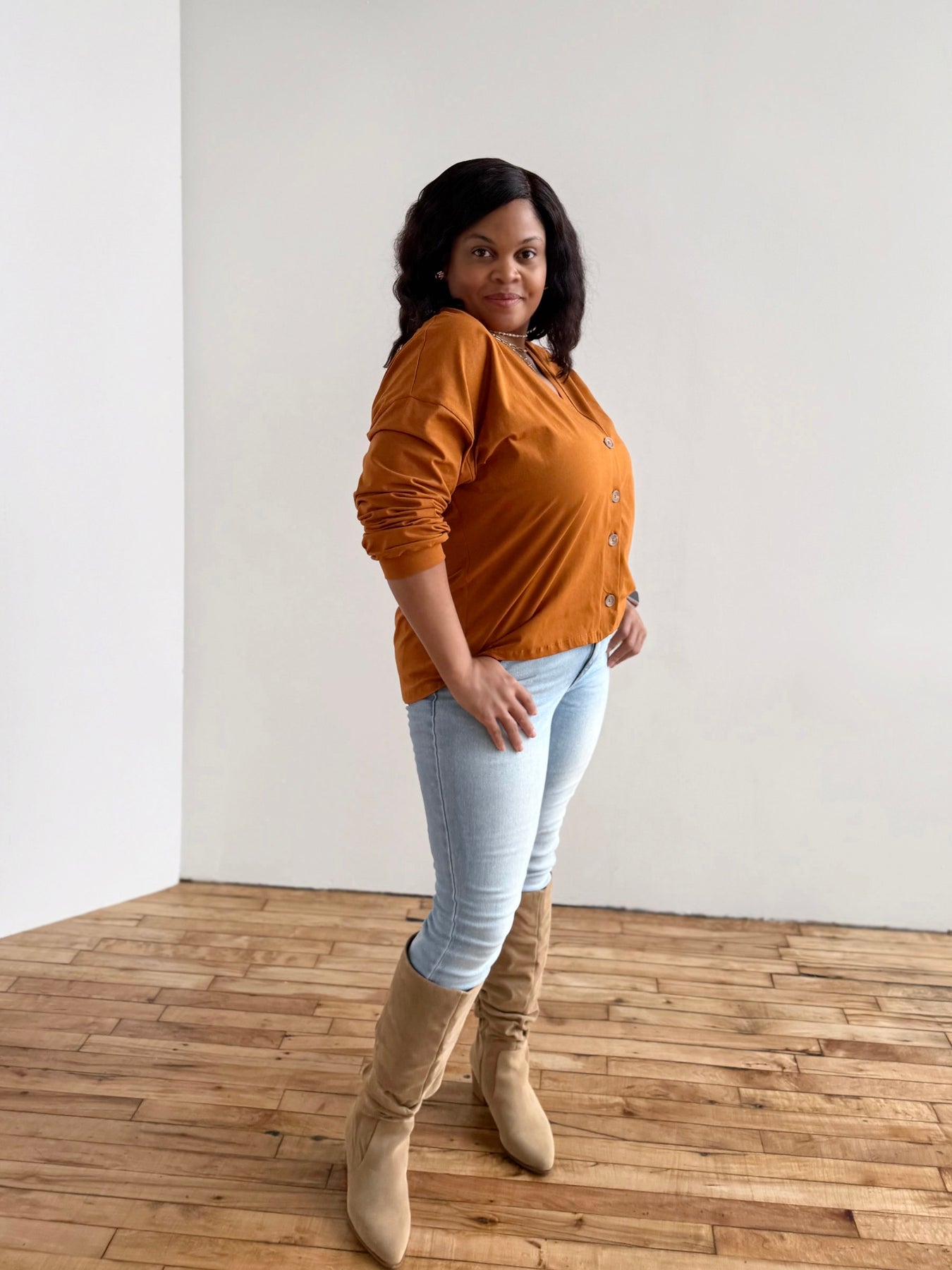 - Kymare wears 1X: Height 5’4” - Bust 47” - Hip 49”