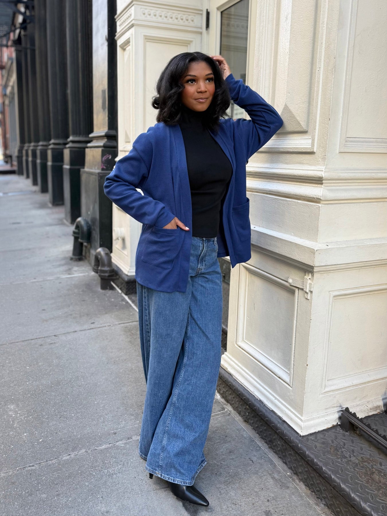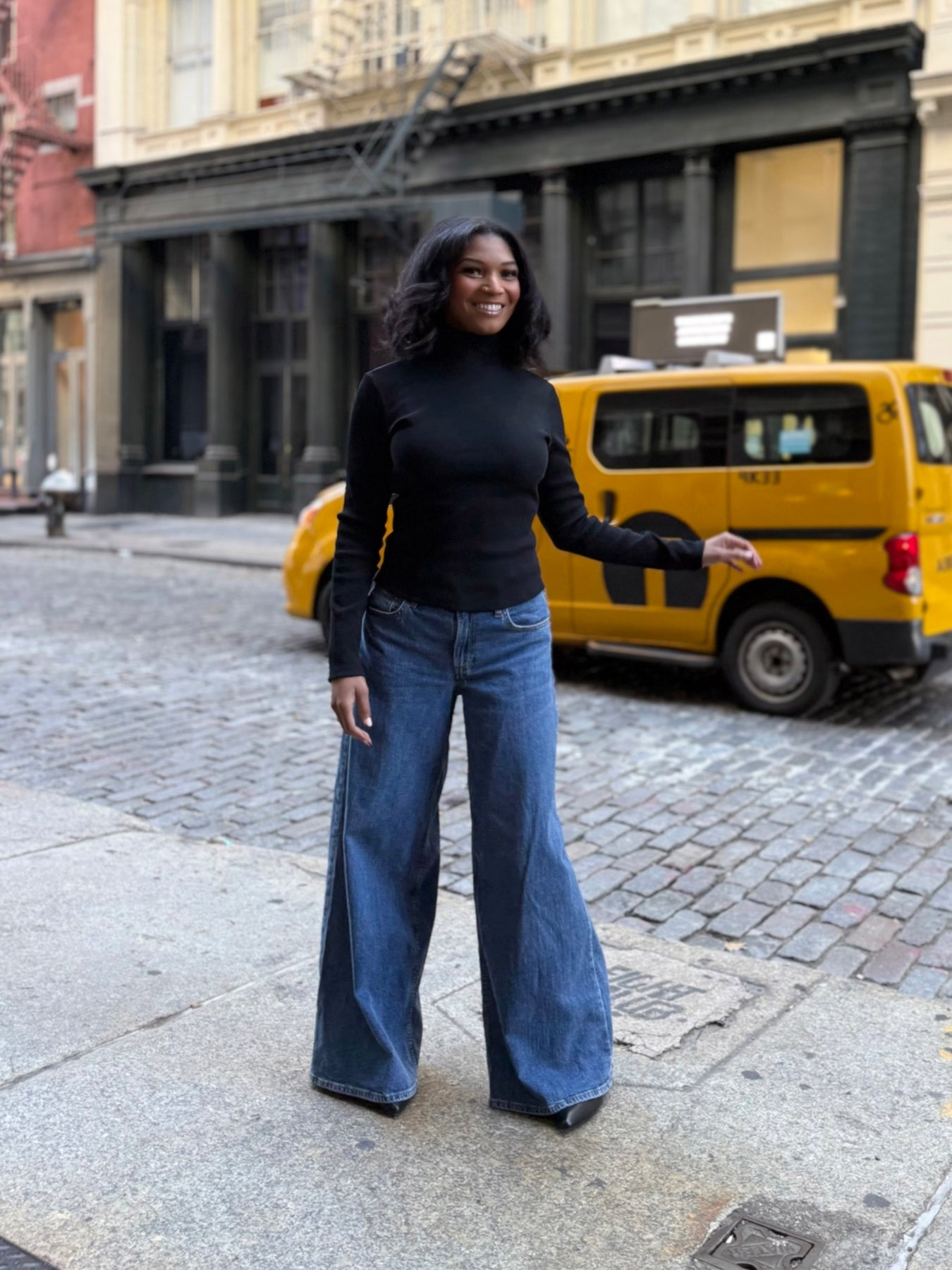 Milane is a cold-weather friendly top with its thick rib-knit material and long sleeves. This is a petite-friendly style with a shorter length, but it still works for long torsos with high-waisted bottoms. The sleeves are extra long for keeping wrists warm.