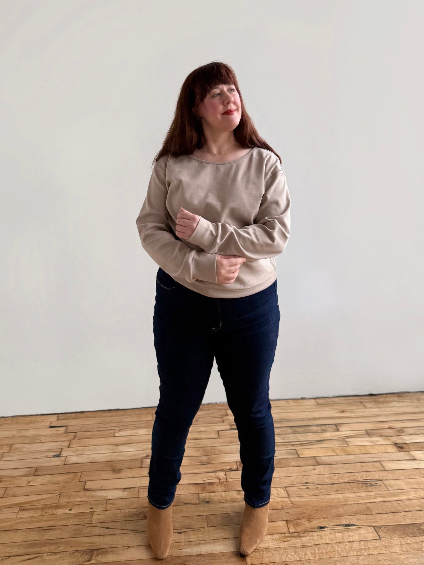 Percy is like a sweatshirt you can wear for many occasions. The stretchy fabric and banded hem ensure durability through countless wears, while the relaxed silhouette adapts to your body with ease. Layer it, wear it solo, and reach for it year after year.