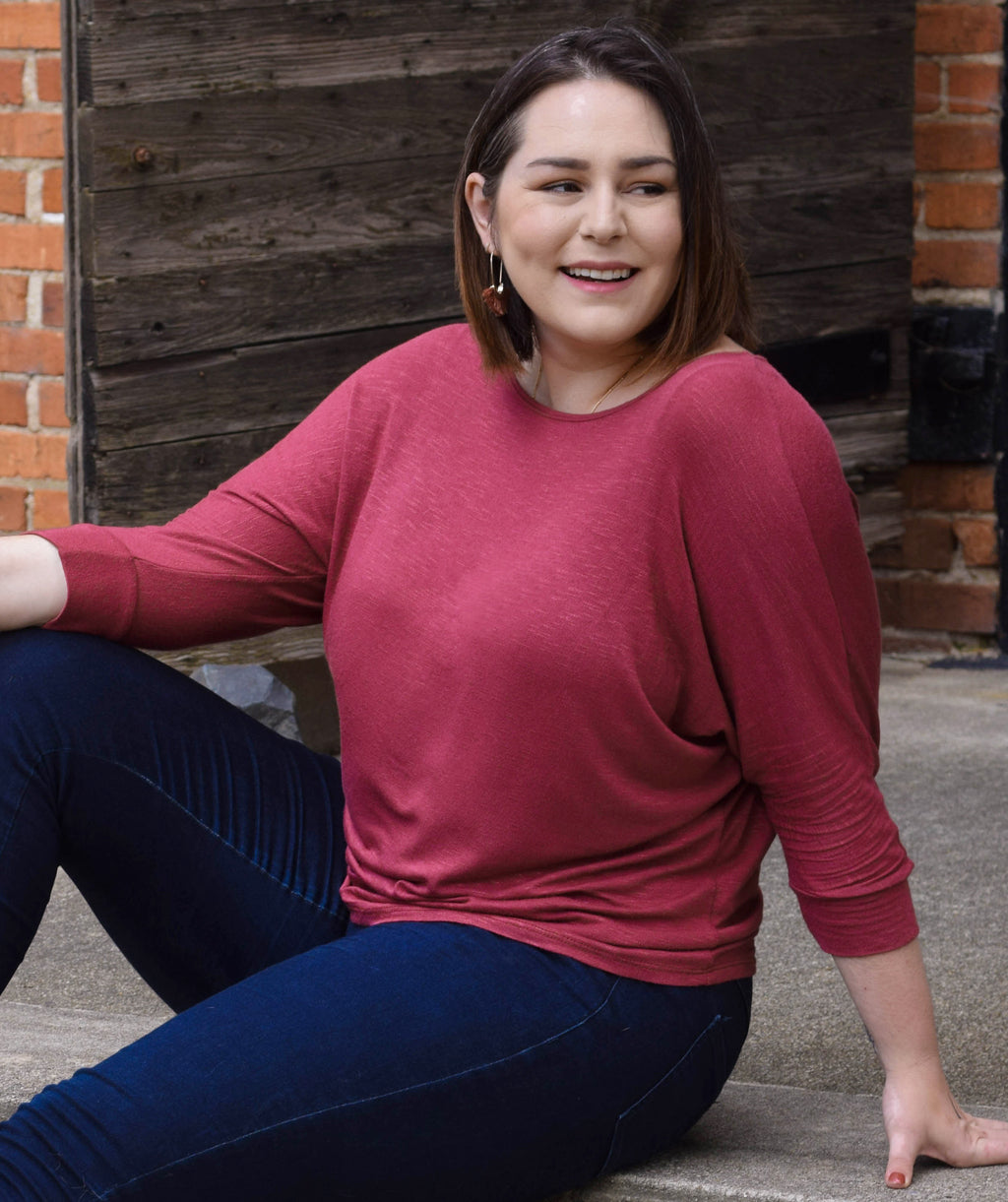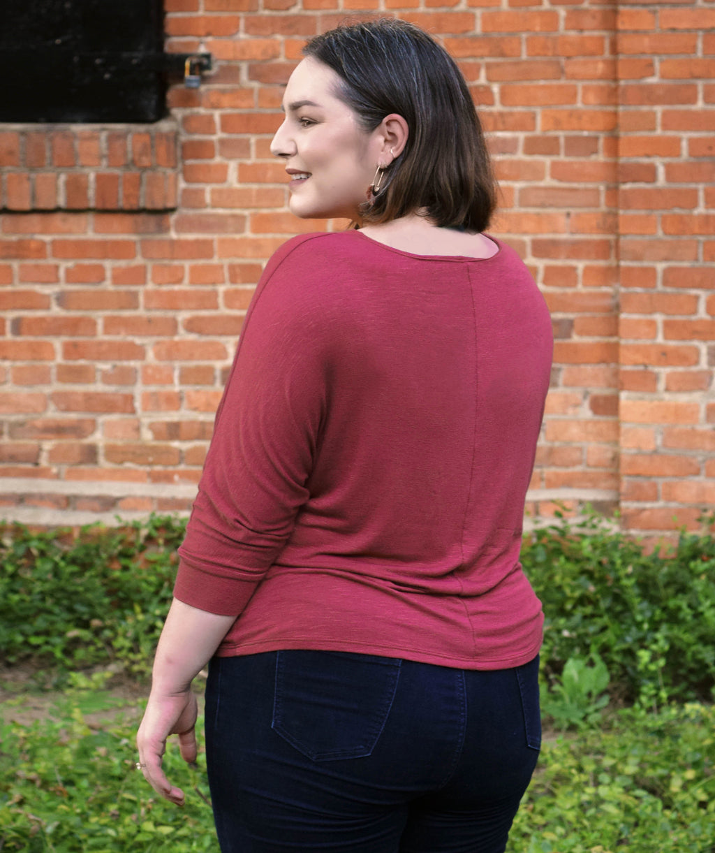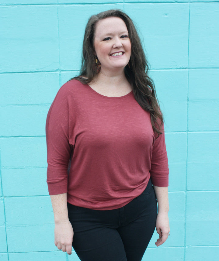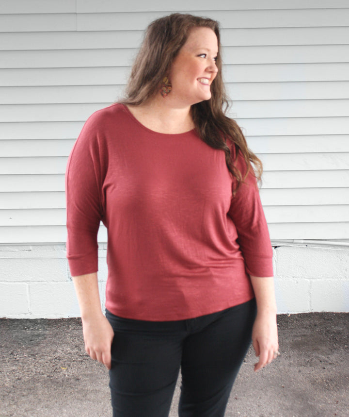 • Don't overthink it.  We have a low return rate overall because most designs are flattering in a size up or down. Our knit fabrics drape in all the right ways!