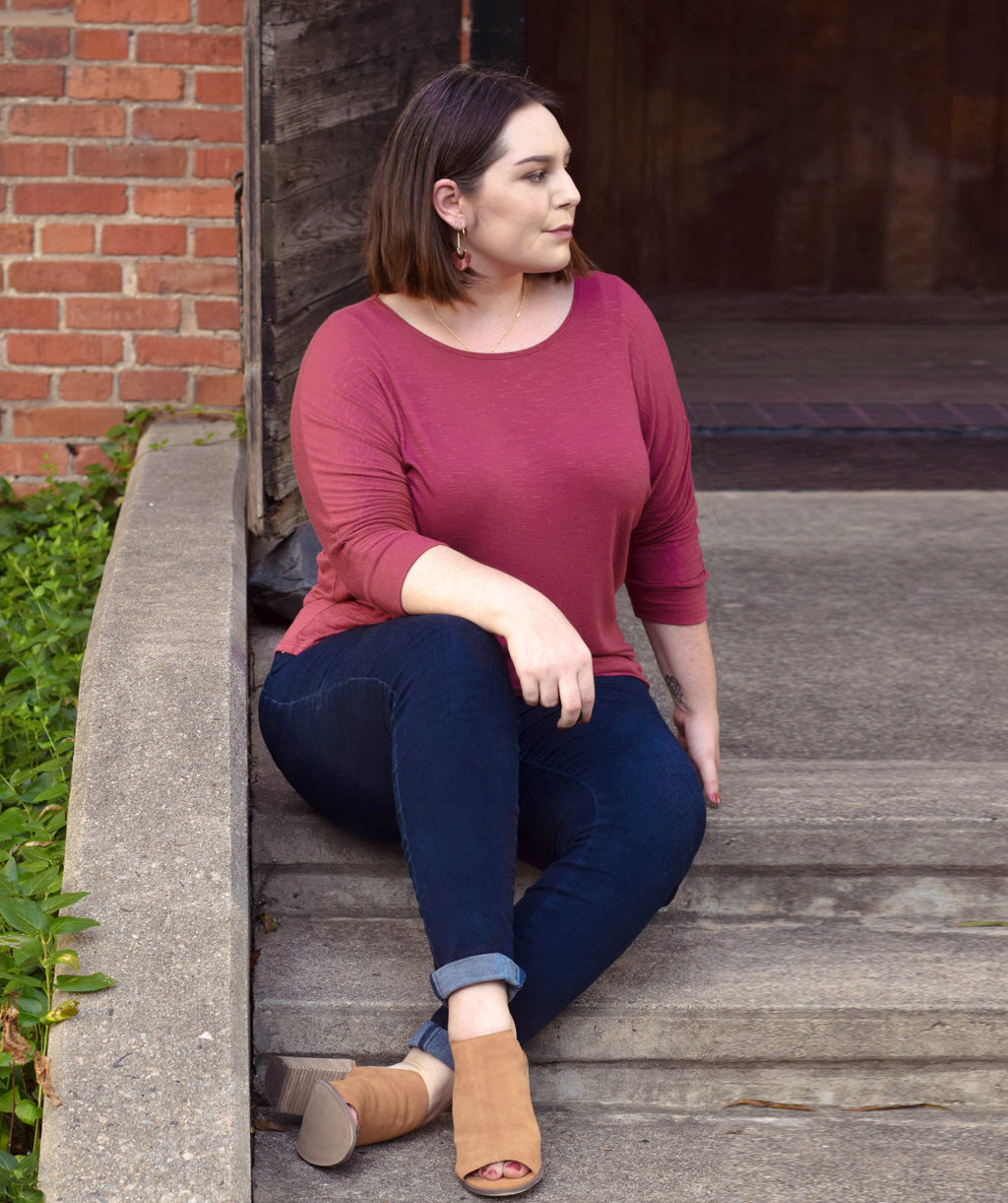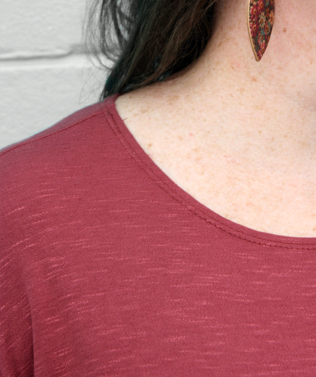 A slouchy tee that is ironically elegant. Shorter in body length than our typical tops.