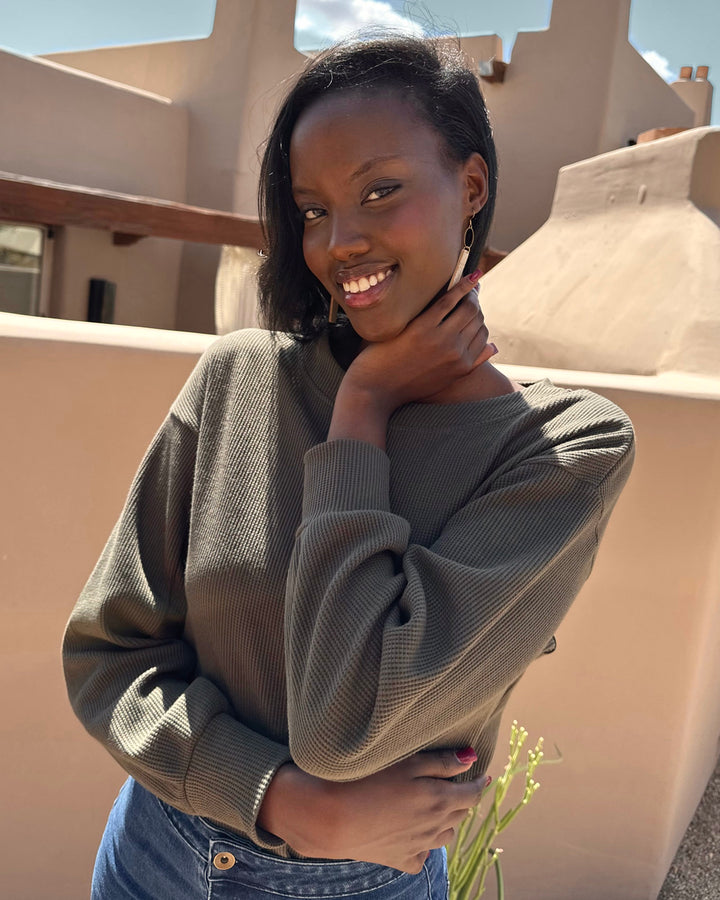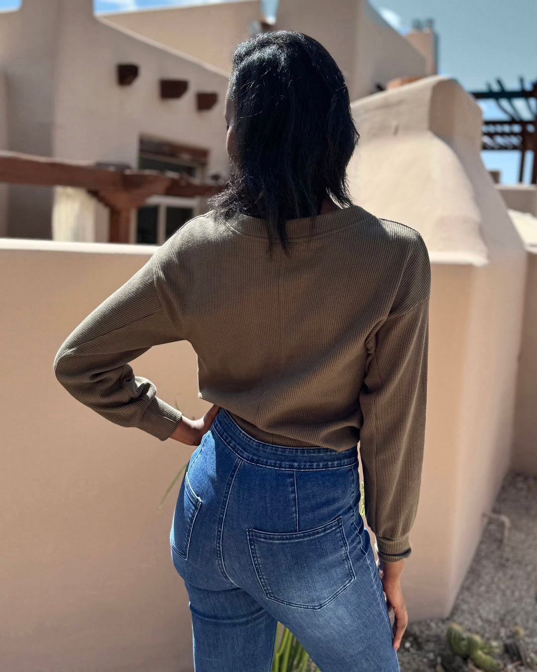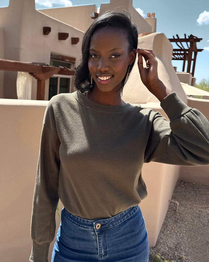 Meet your new favorite cold-weather top. The boat neckline is warm to wear and perfectly bra-friendly. The fitted sleeve cuff gives this relaxed basic a delicate touch. You may not notice the slight design details of the dropped shoulder and curved hem, but they are thoughtful details we know that make the top so flattering.