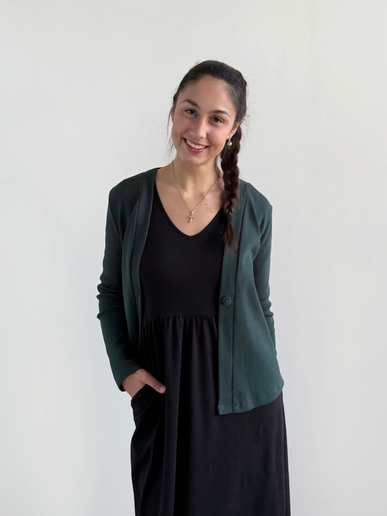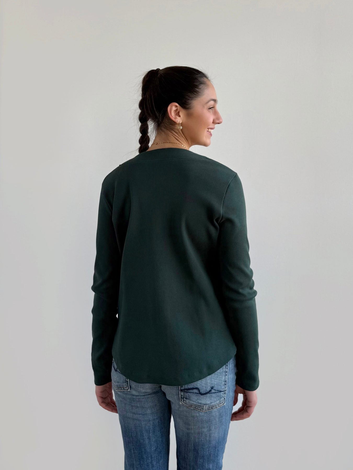 JUDE rib-knit fitted cardigan in Dark Jade