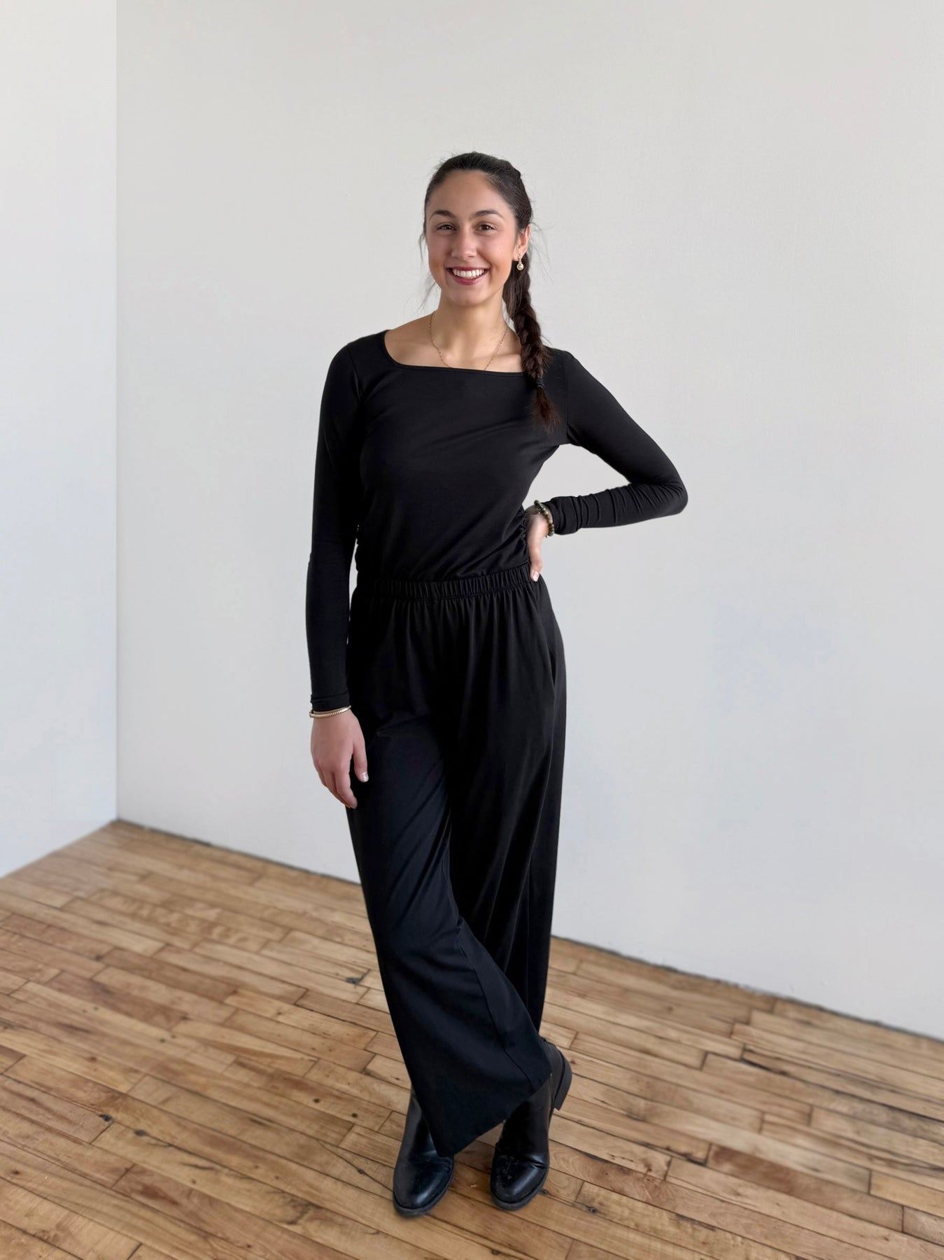 • The elastic waist is a match to our size chart, and the flowy hips have ease. Choose your size based on your waist measurement. Size down if in between sizes or you prefer a less flowy cut.