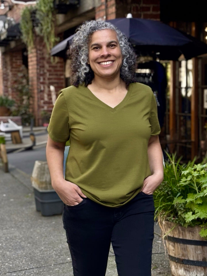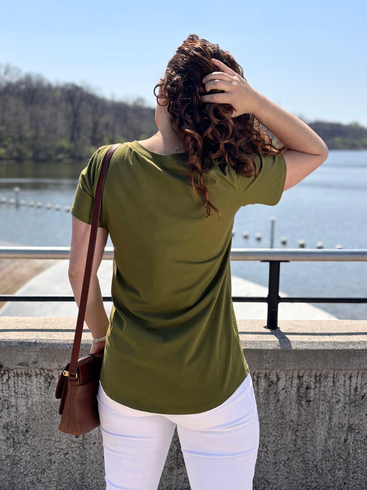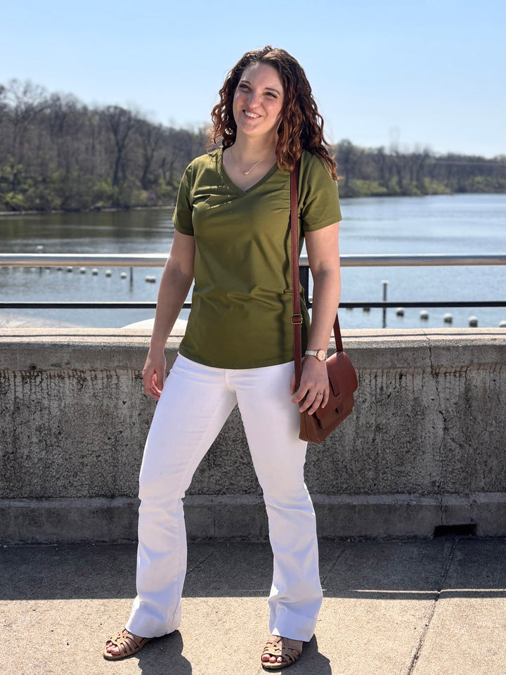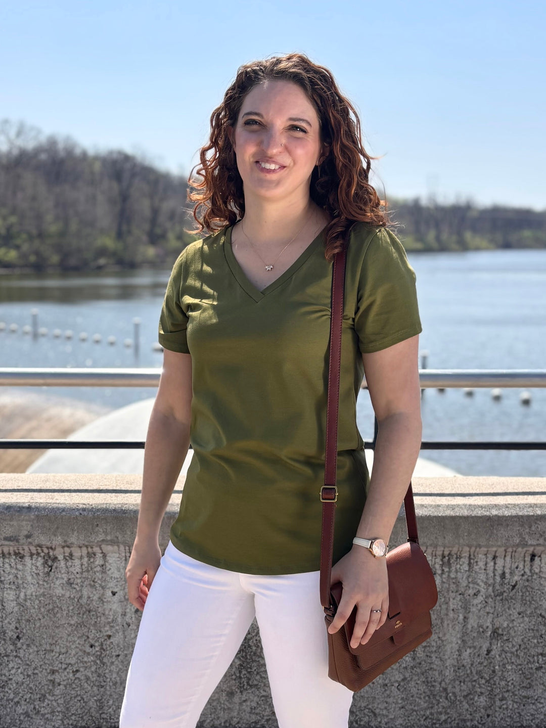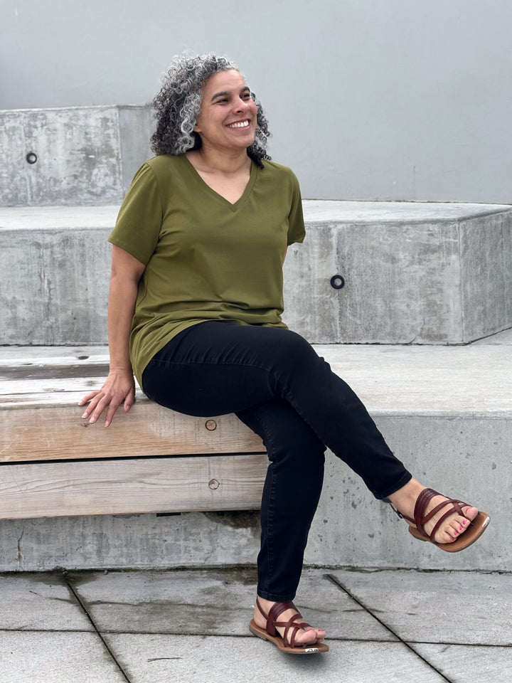The essential v-neck tee crafted from our signature cotton jersey, designed to last for a low cost per wear. It provides style and comfort for those who like extra length and don't want to worry about it getting too short after laundering.
