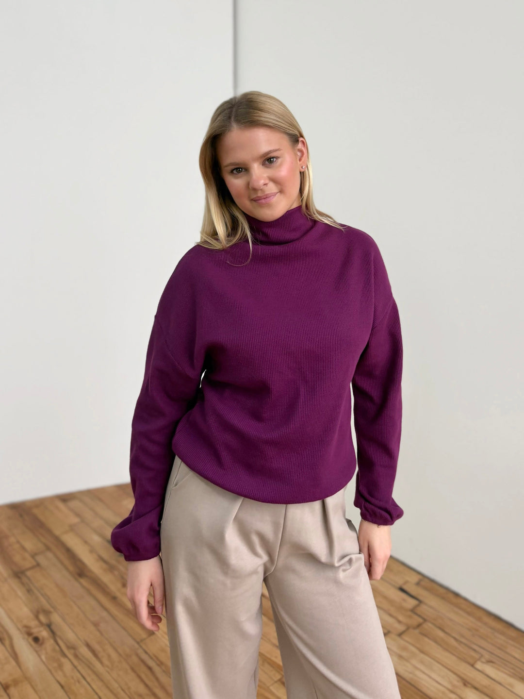 ANNIKA waffle knit top in Purple Jewel