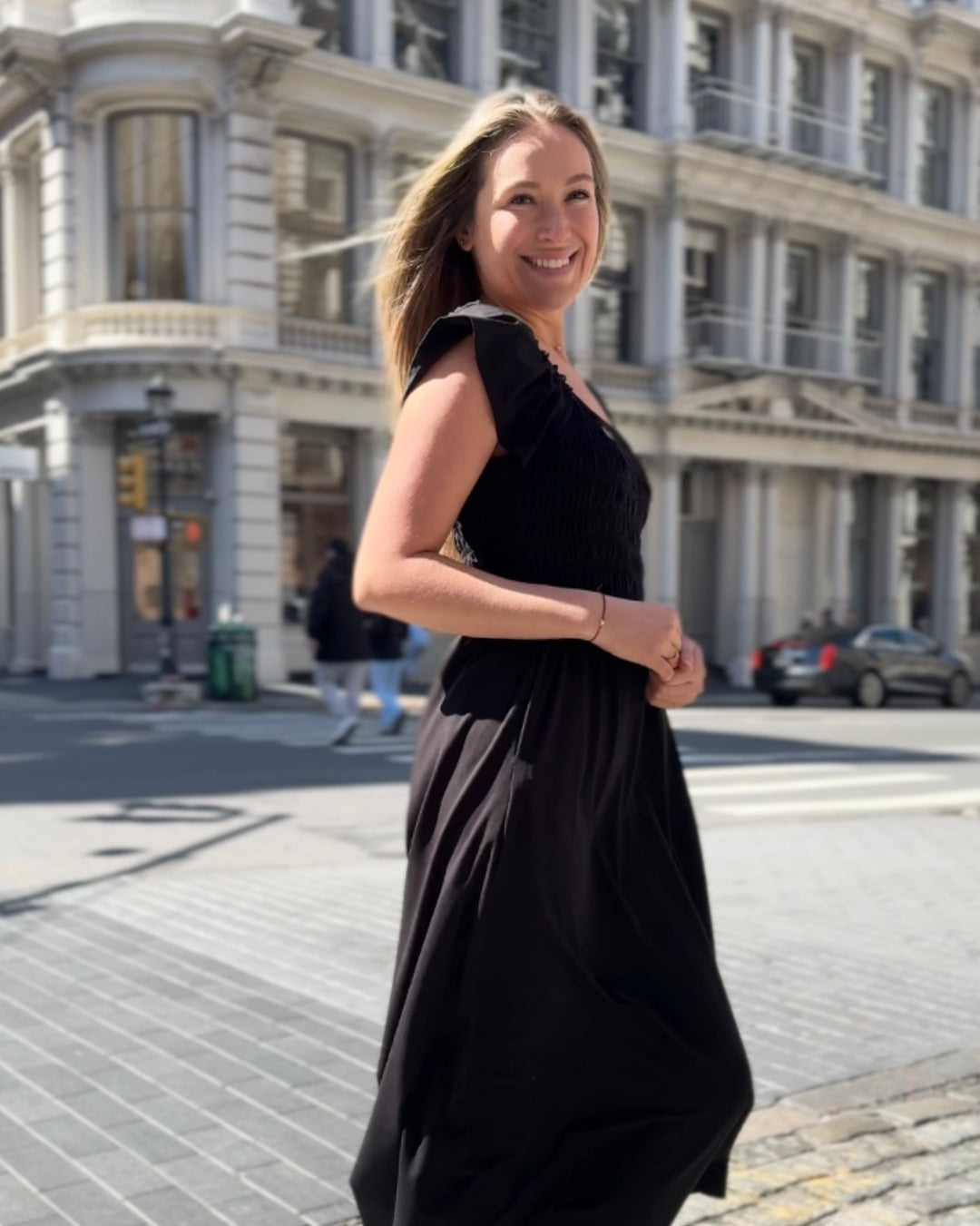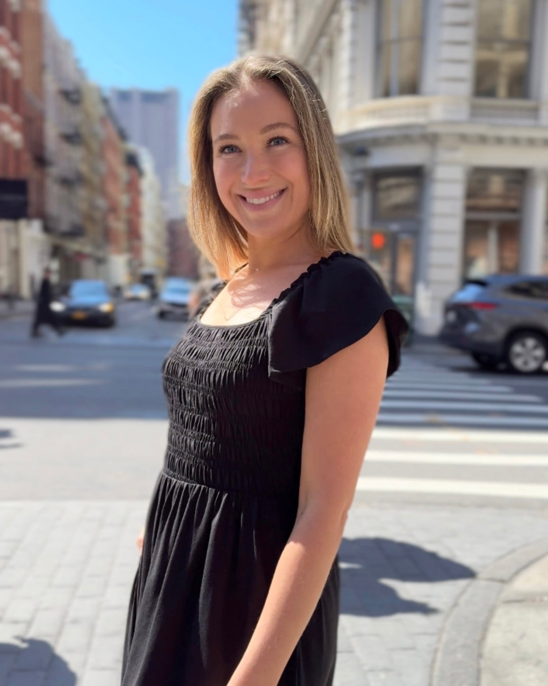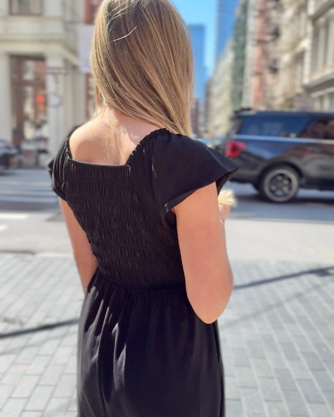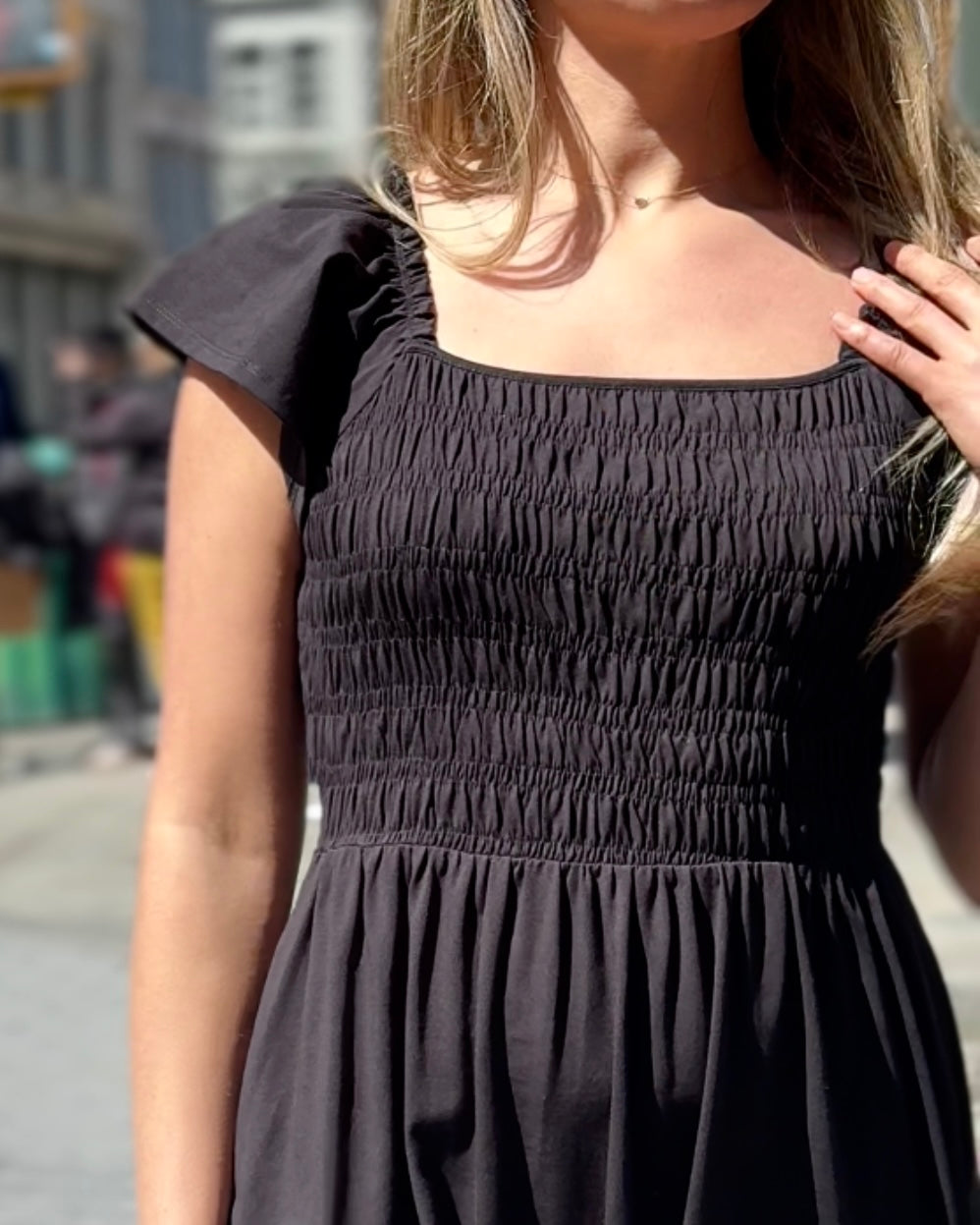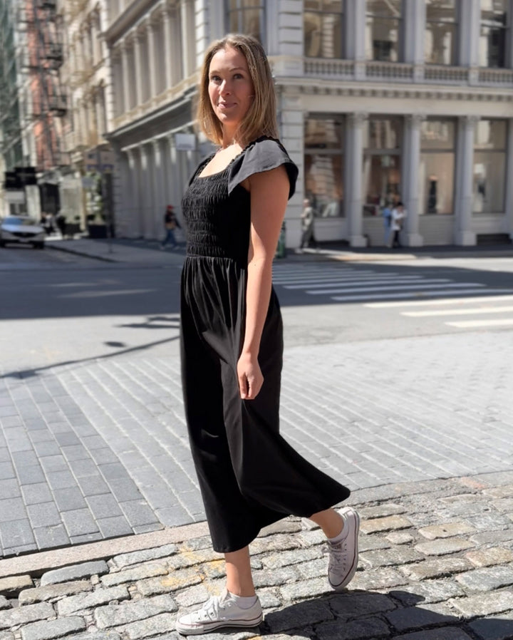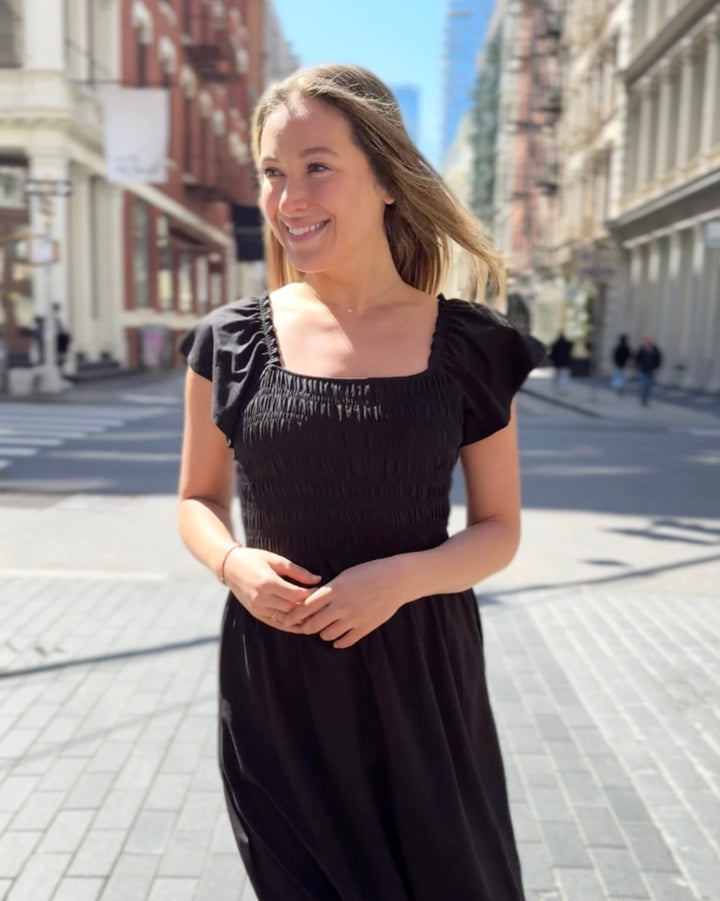 ADELIA smocked dress in Black