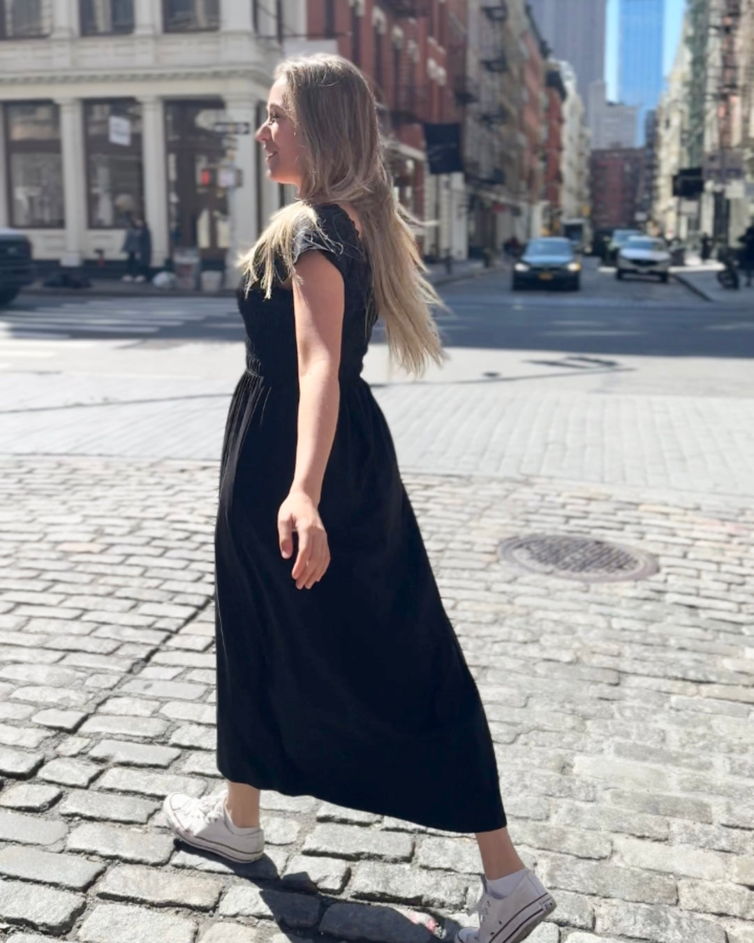 • This longer dress works for every height. It's a true maxi dress on a 5'0" woman, and a midi length on 6'0"