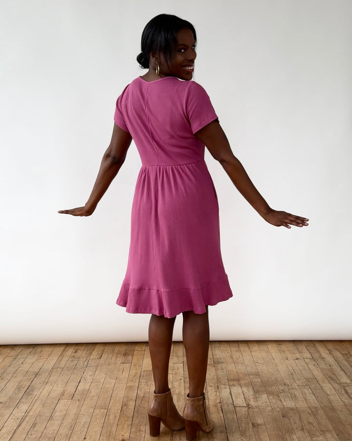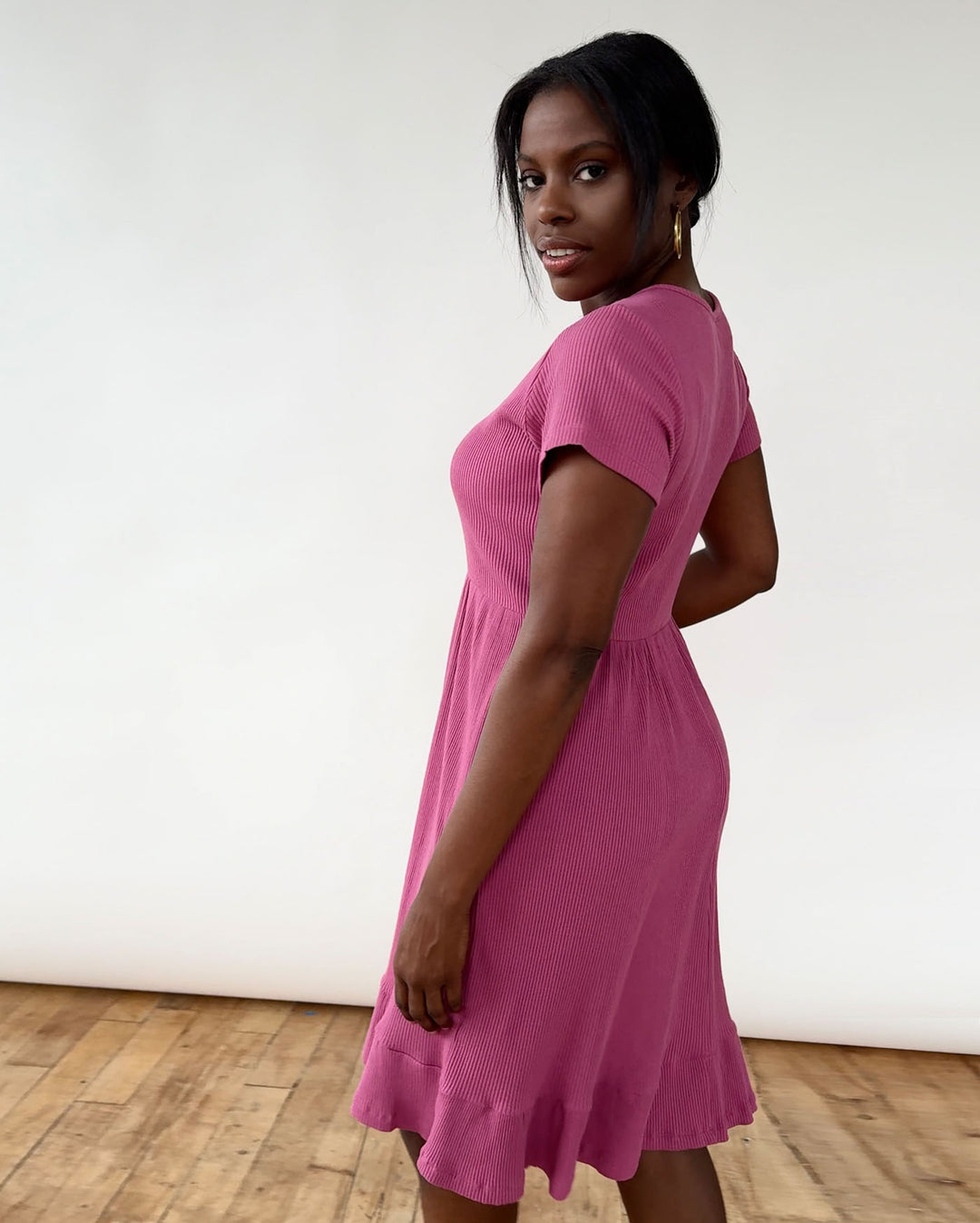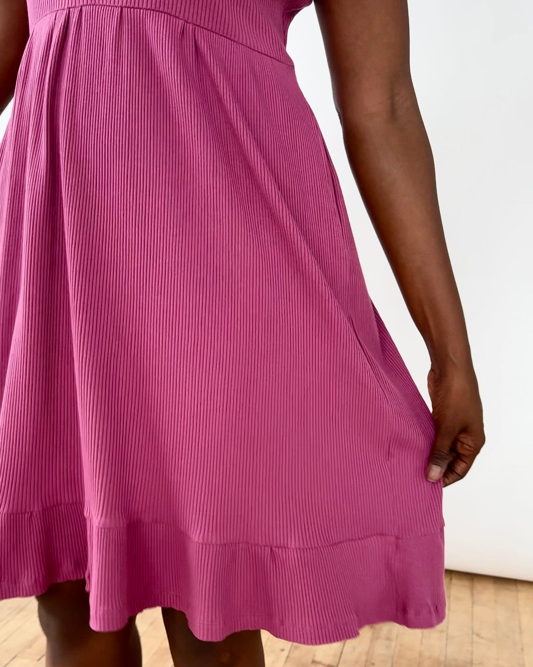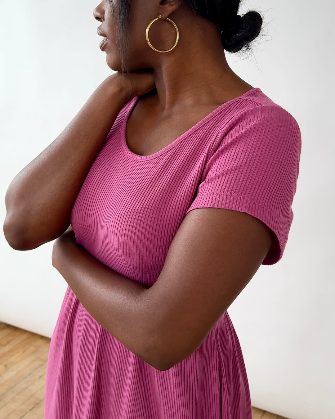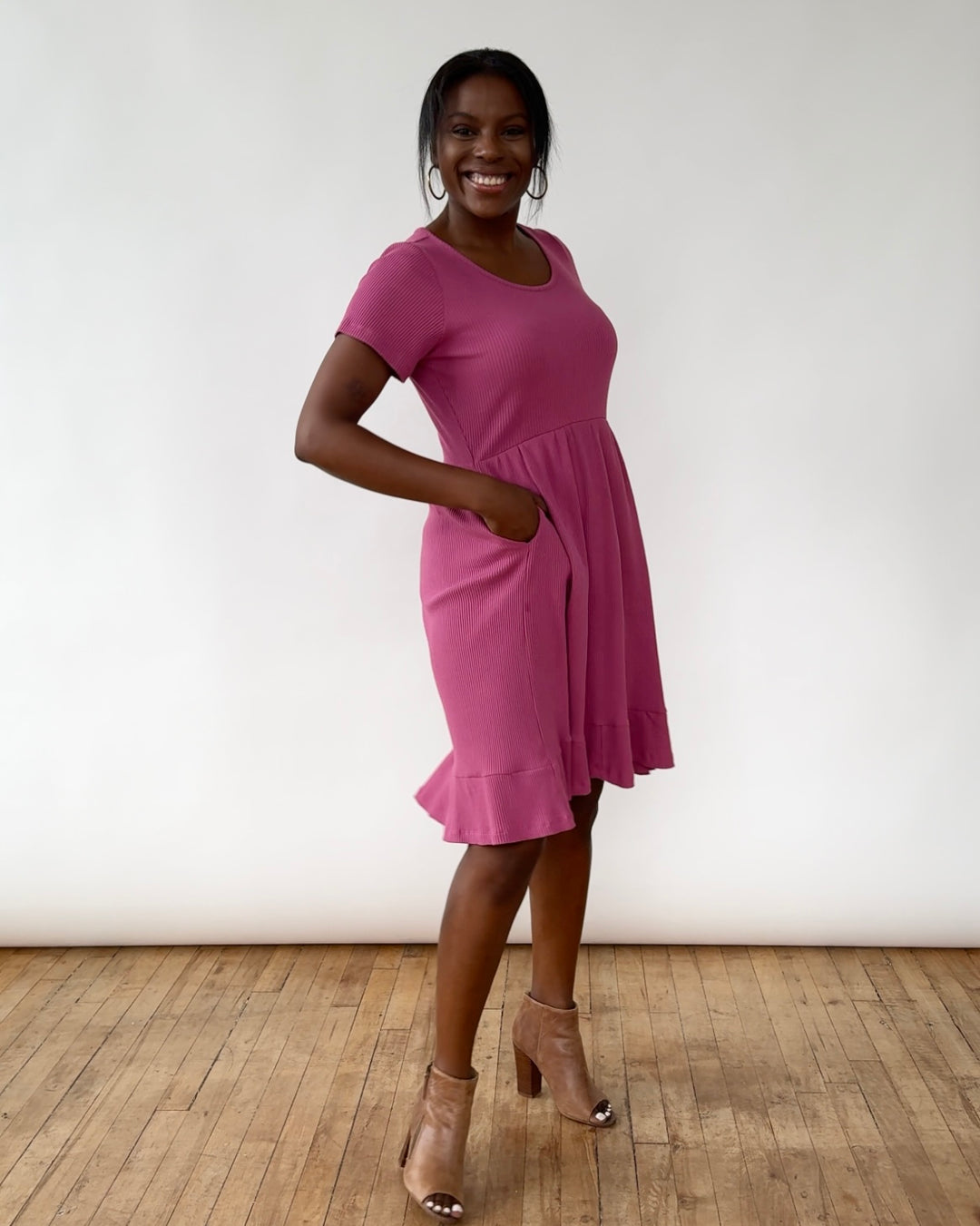 This rib knit dress is crafted with comfort, and contouring to your curves. The fabric provides a softer, more relaxed fit. Complete with pockets at the side seams, it's the dress that will take you through the day with ease and confidence.