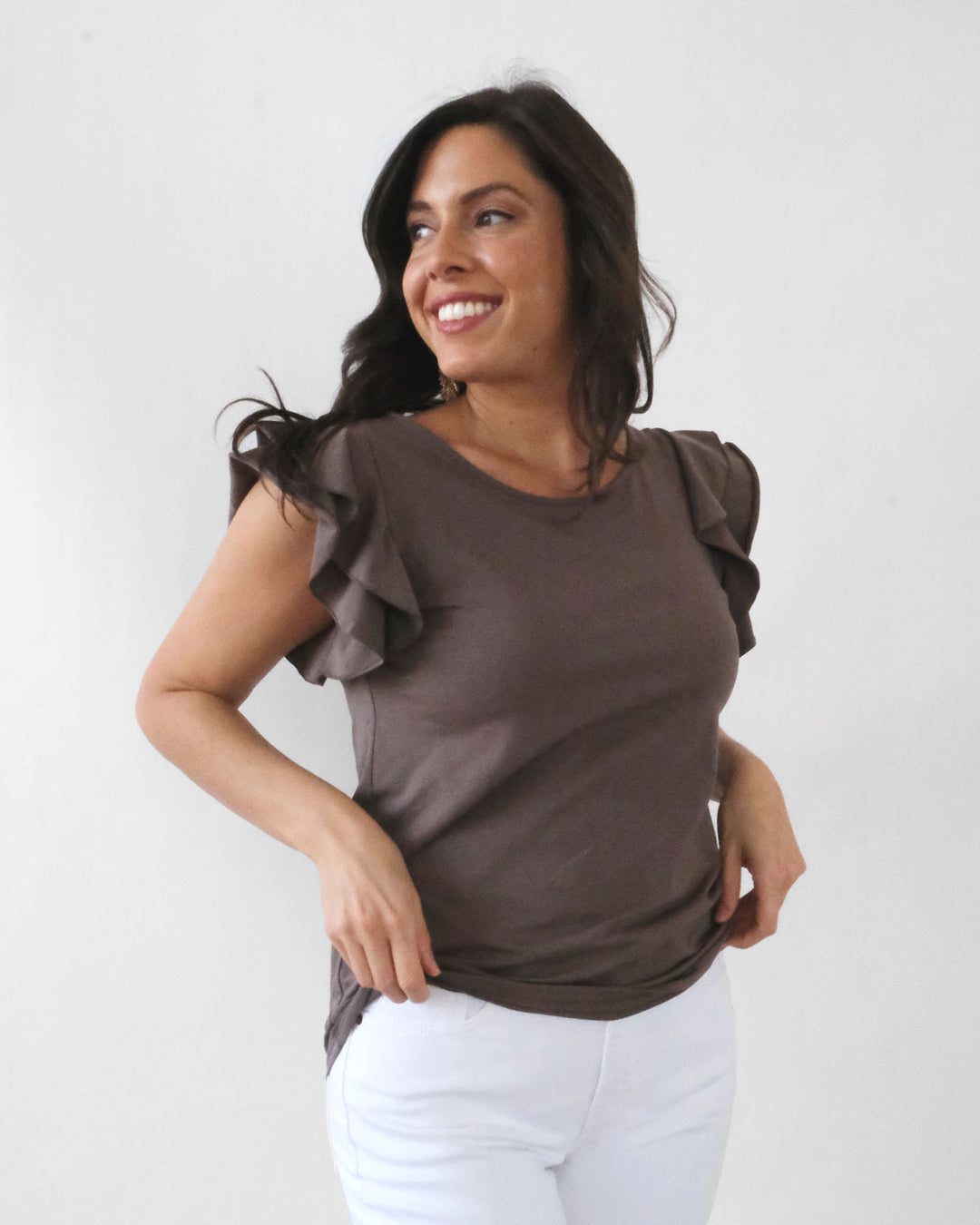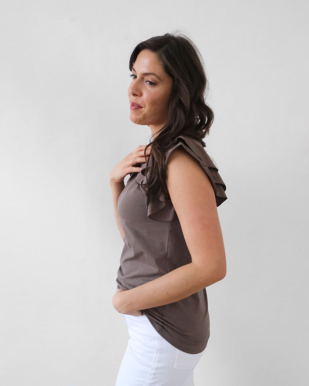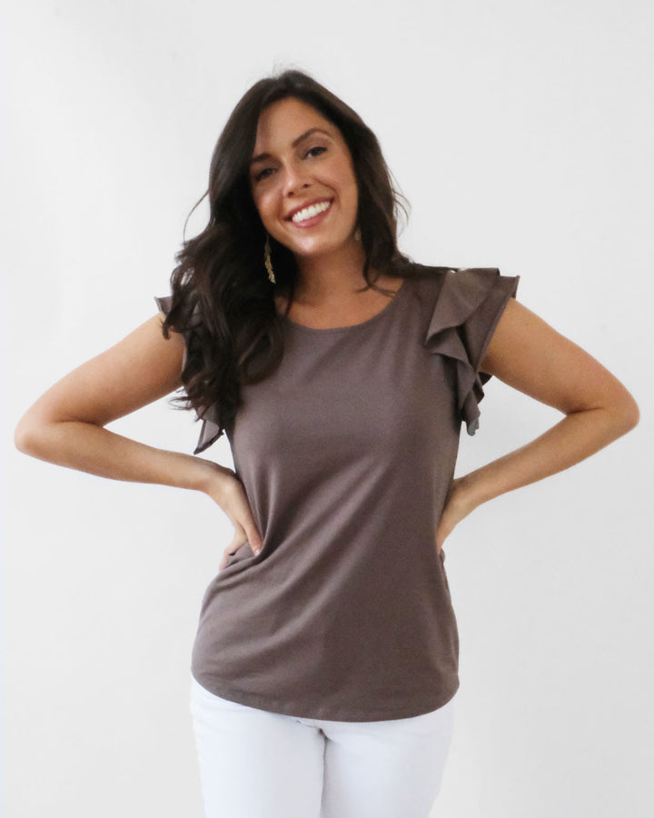 • Don't overthink it.  We have a low return rate overall because most designs are flattering in a size up or down. Our knit fabrics drape in all the right ways!