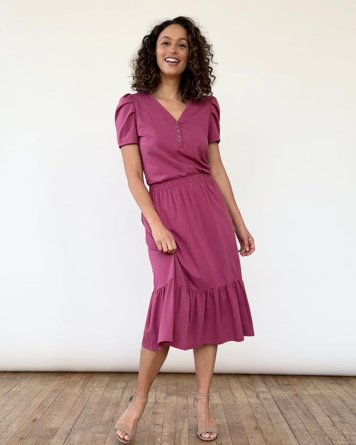 - Don't overthink it. We have a low return rate overall because most designs are flattering in a size up or down. Our knit fabrics drape in all the right ways!