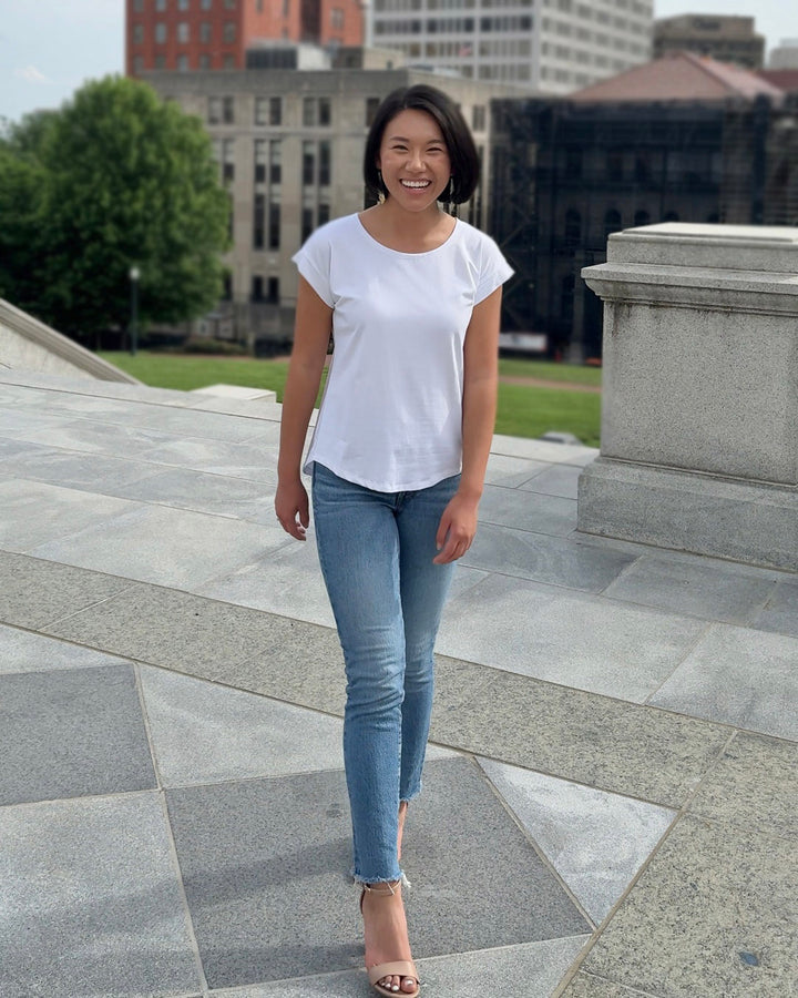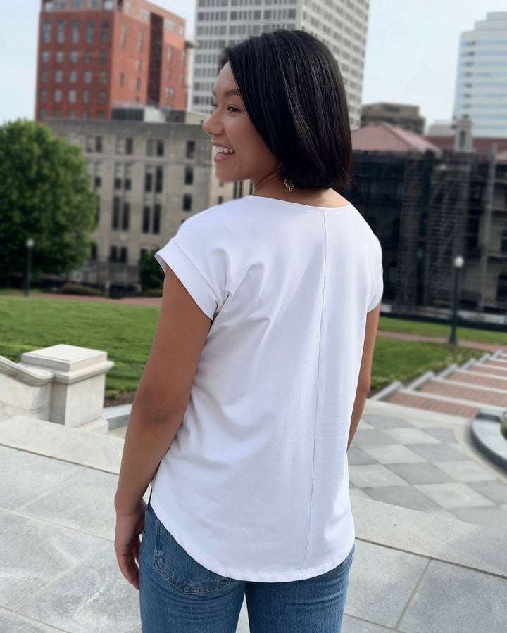 The Cezanne tee has more than a simple silhouette, it's all in the cut. The side seams are slanted toward the front to create a unique hem shape.