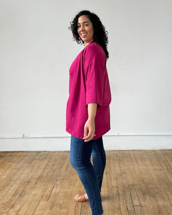 - Relaxed cut around chest, armhole and sleeves. Intended to be a flowy layering piece, but you can size down easily.