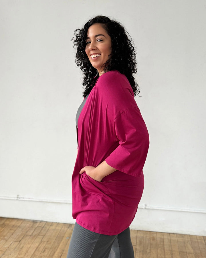 The Evana is the lightweight layering piece that instantly elevates your outfit. From an afternoon nap to styling for an elegant event, it's length is ideal for all the things. You'll also enjoy the hidden pockets in the side seams.