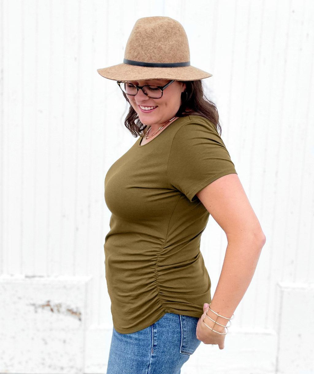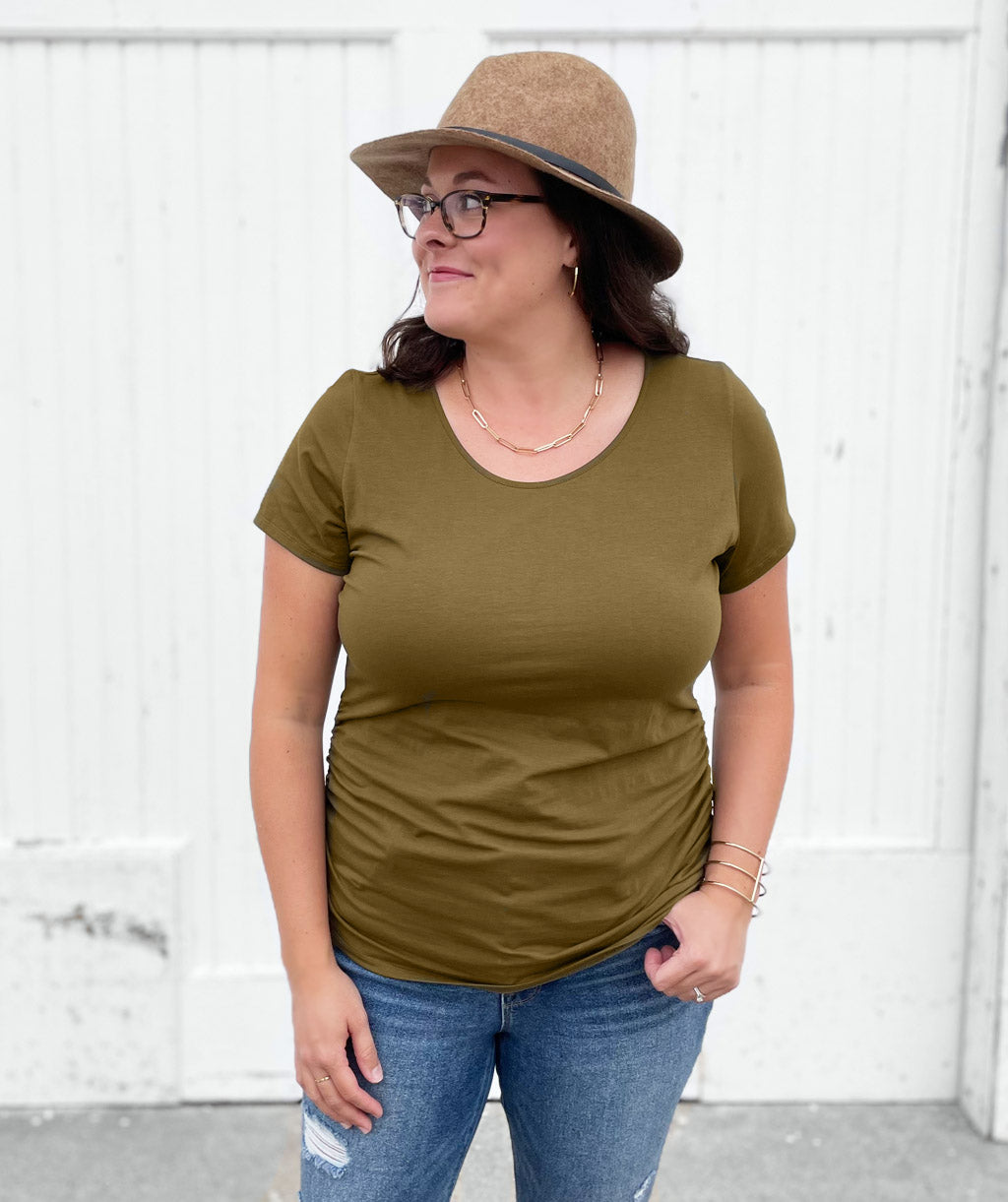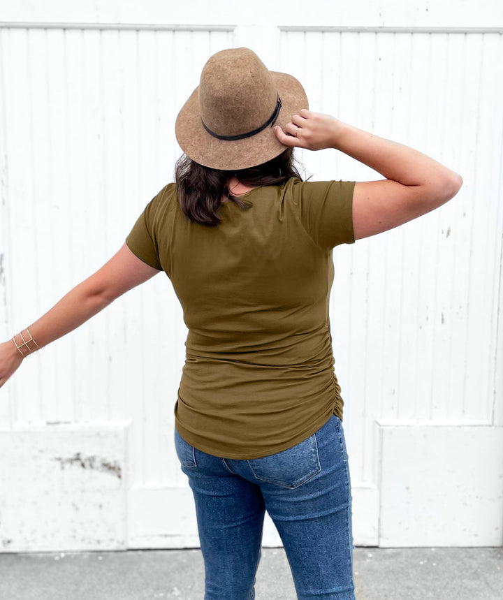 FIONA ruched tee in Military Olive