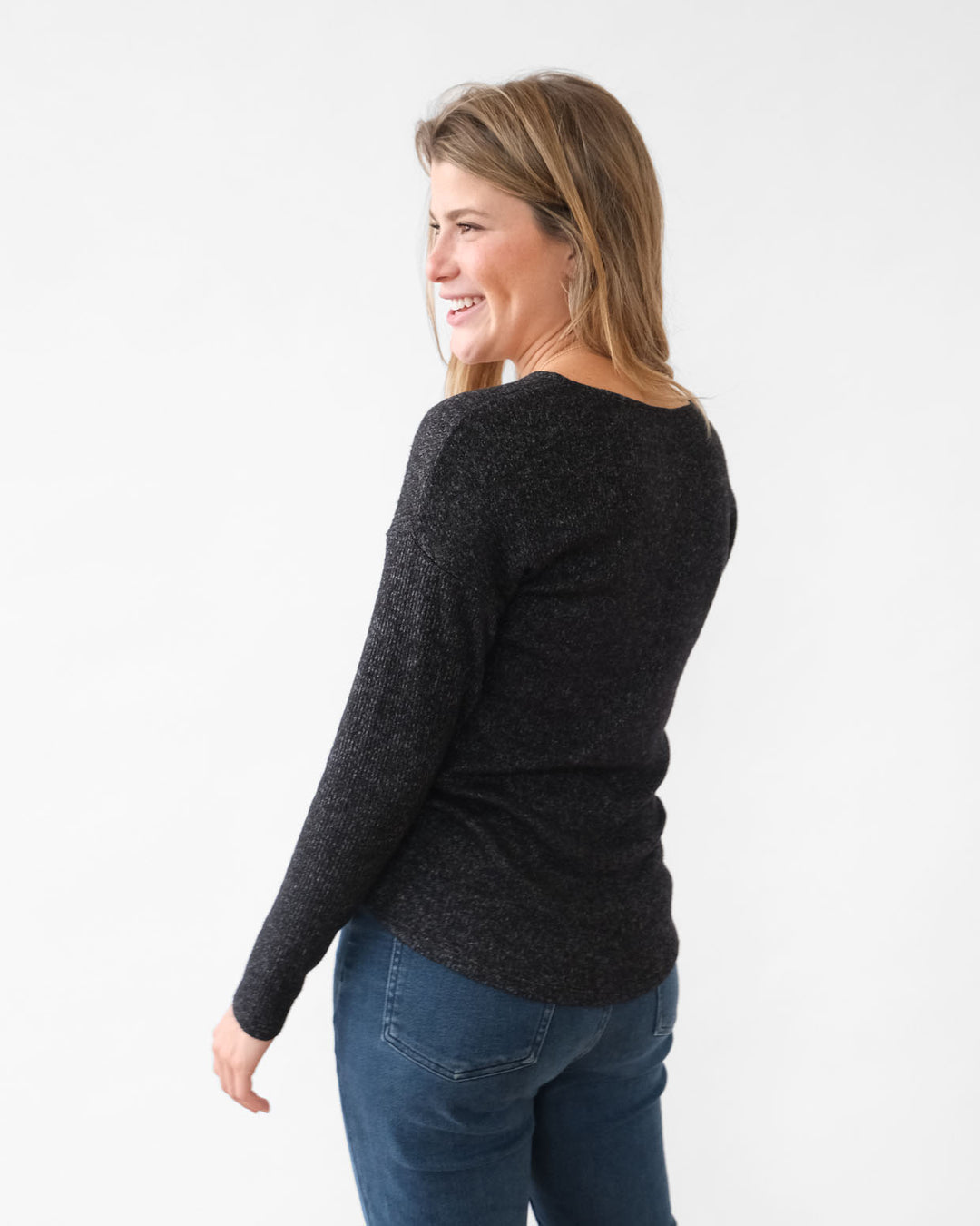 • Don't overthink it.  We have a low return rate overall because most designs are flattering in a size up or down. Our knit fabrics drape in all the right ways!