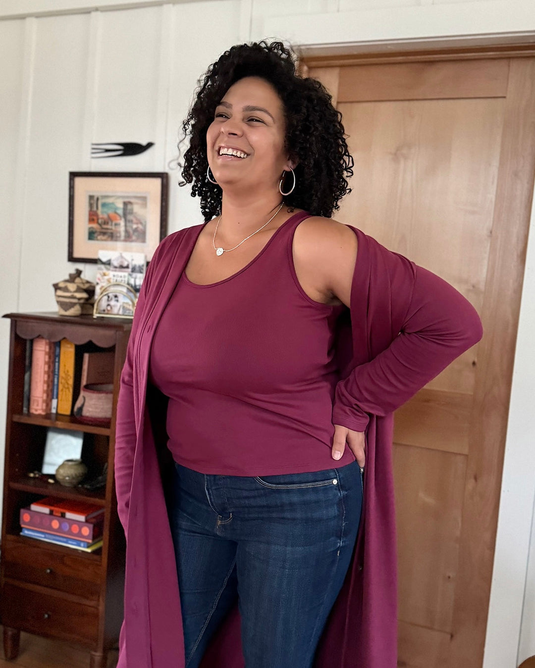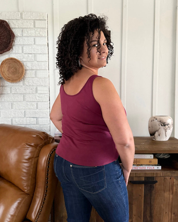 The must-have layer you'll wear as the under shell to any outfit. This tank isn't guaranteed to be bra-friendly, but it's the perfect layering piece to wear. Ideal for all seasons, including the hot summers because this thicker doubleknit jersey is breathable.
