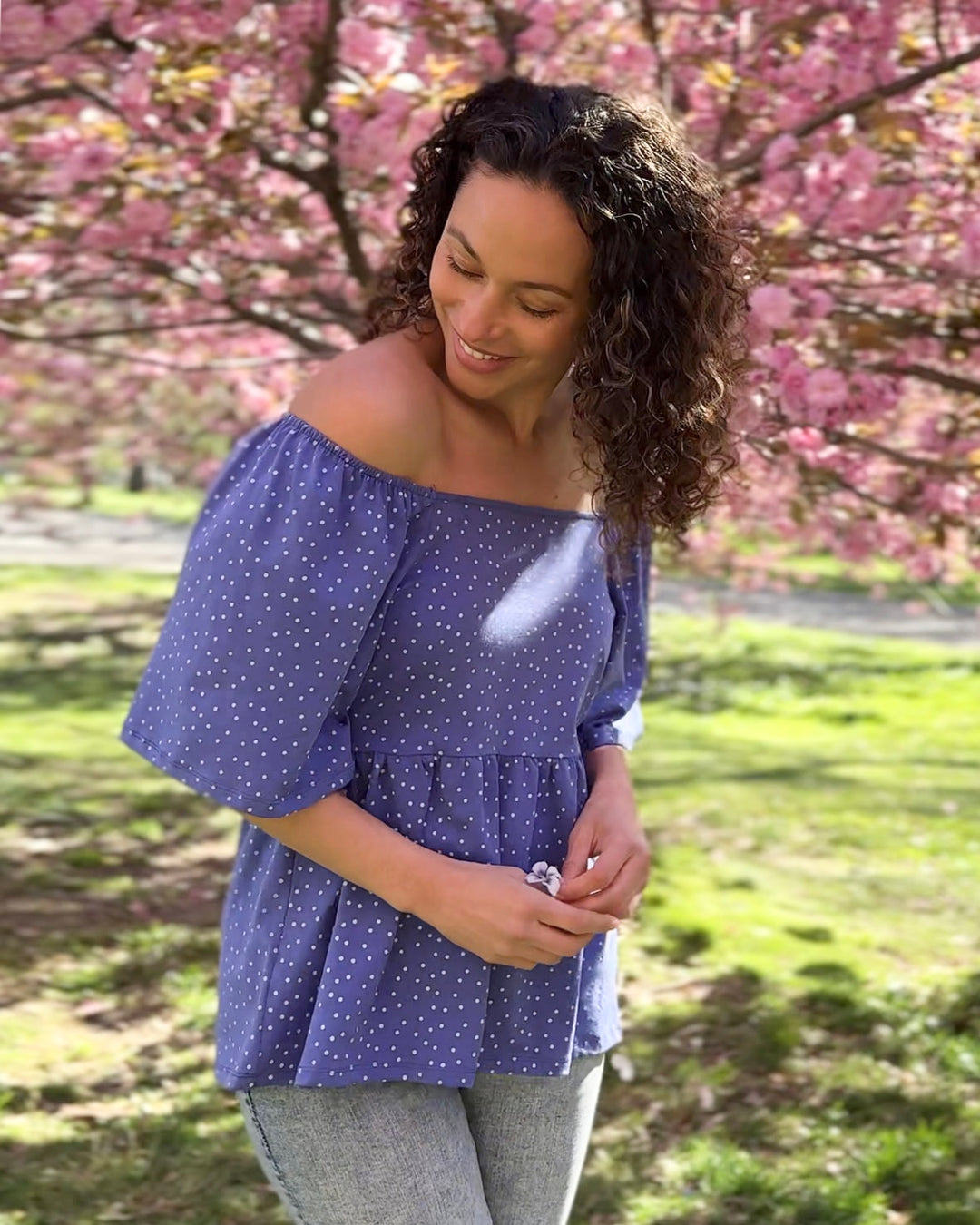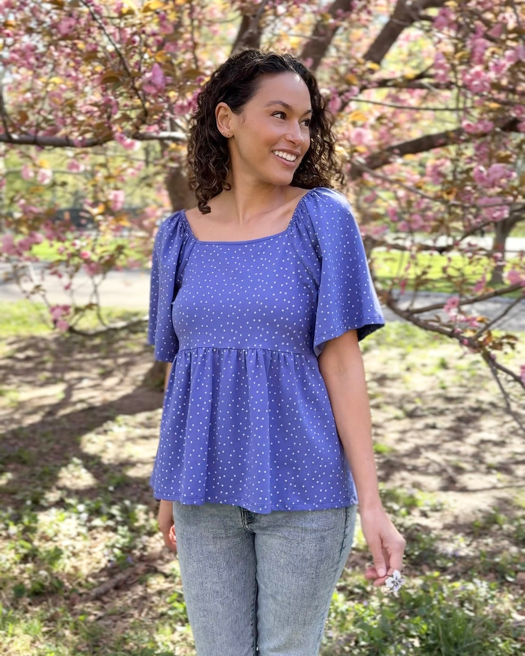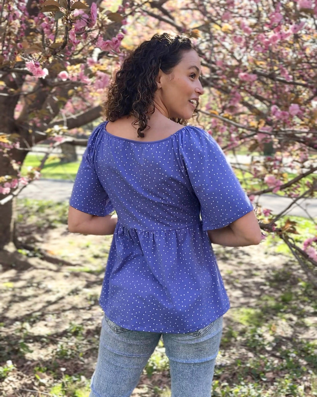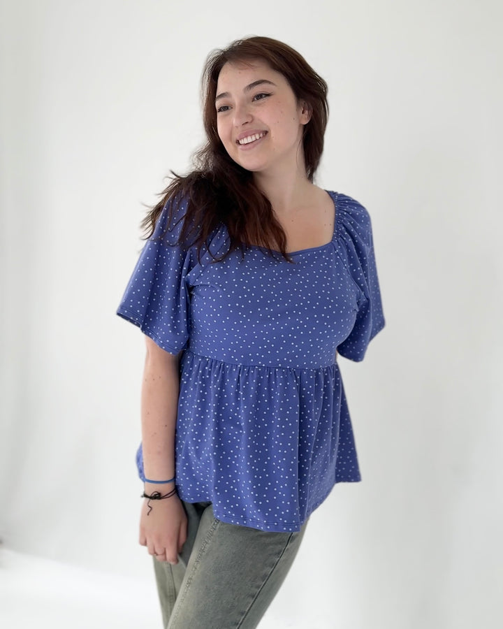 Enjoy the comfort of a defined waist while staying flowy for comfort. Length is longer than our usual peplum tops.