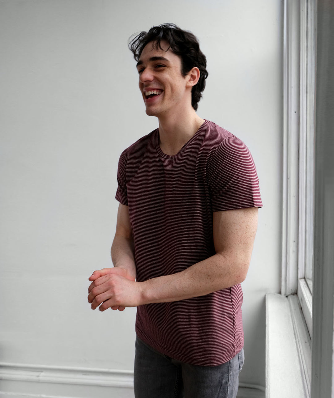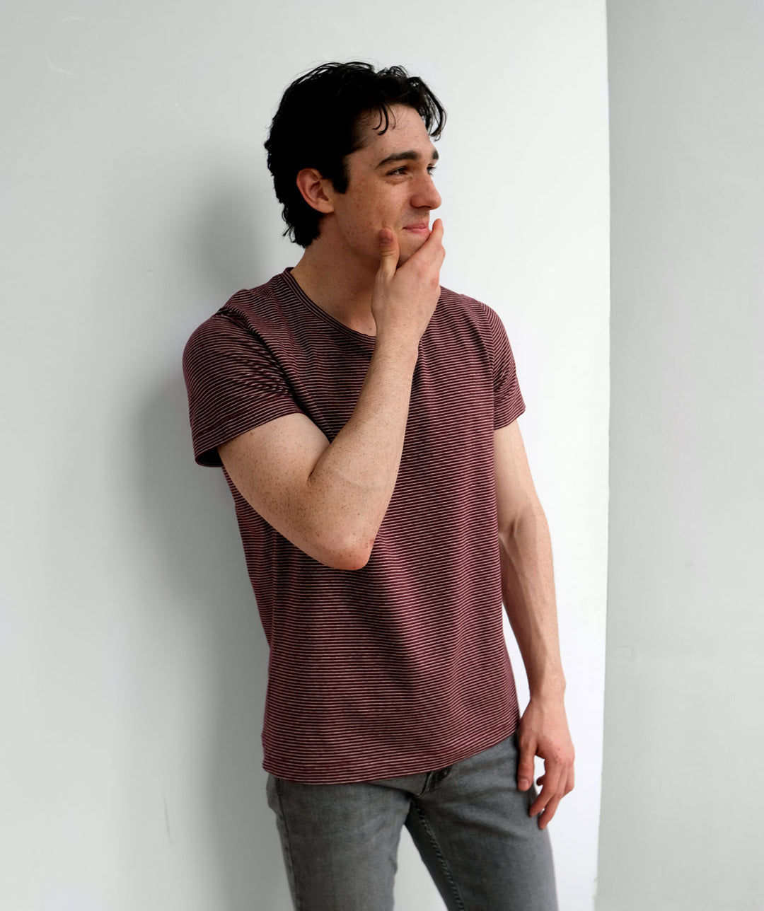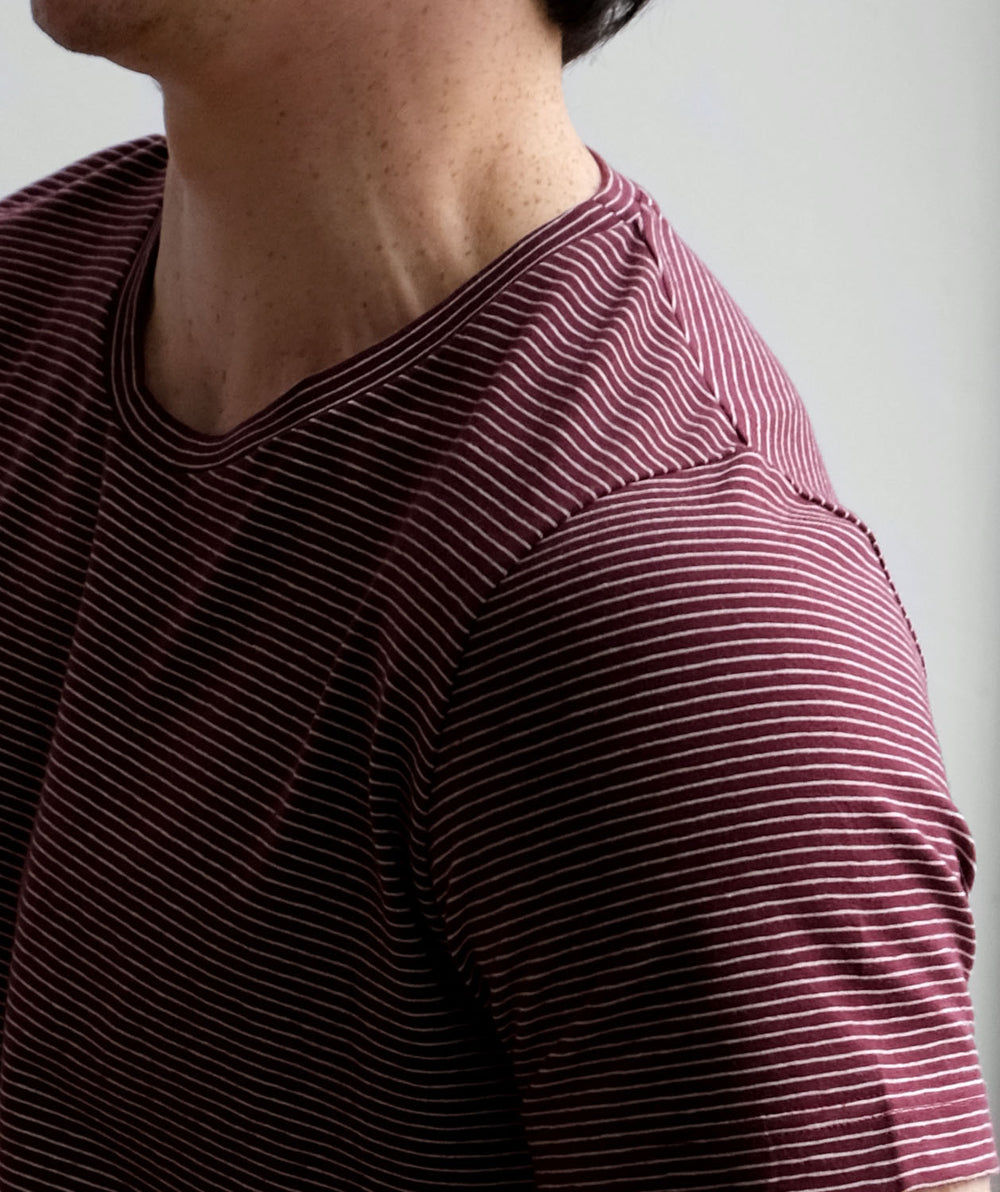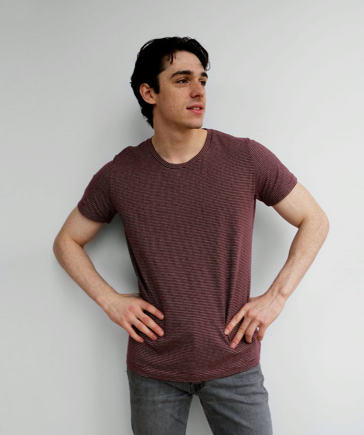 ISSAC men's stripe tee in Wine/Cream
