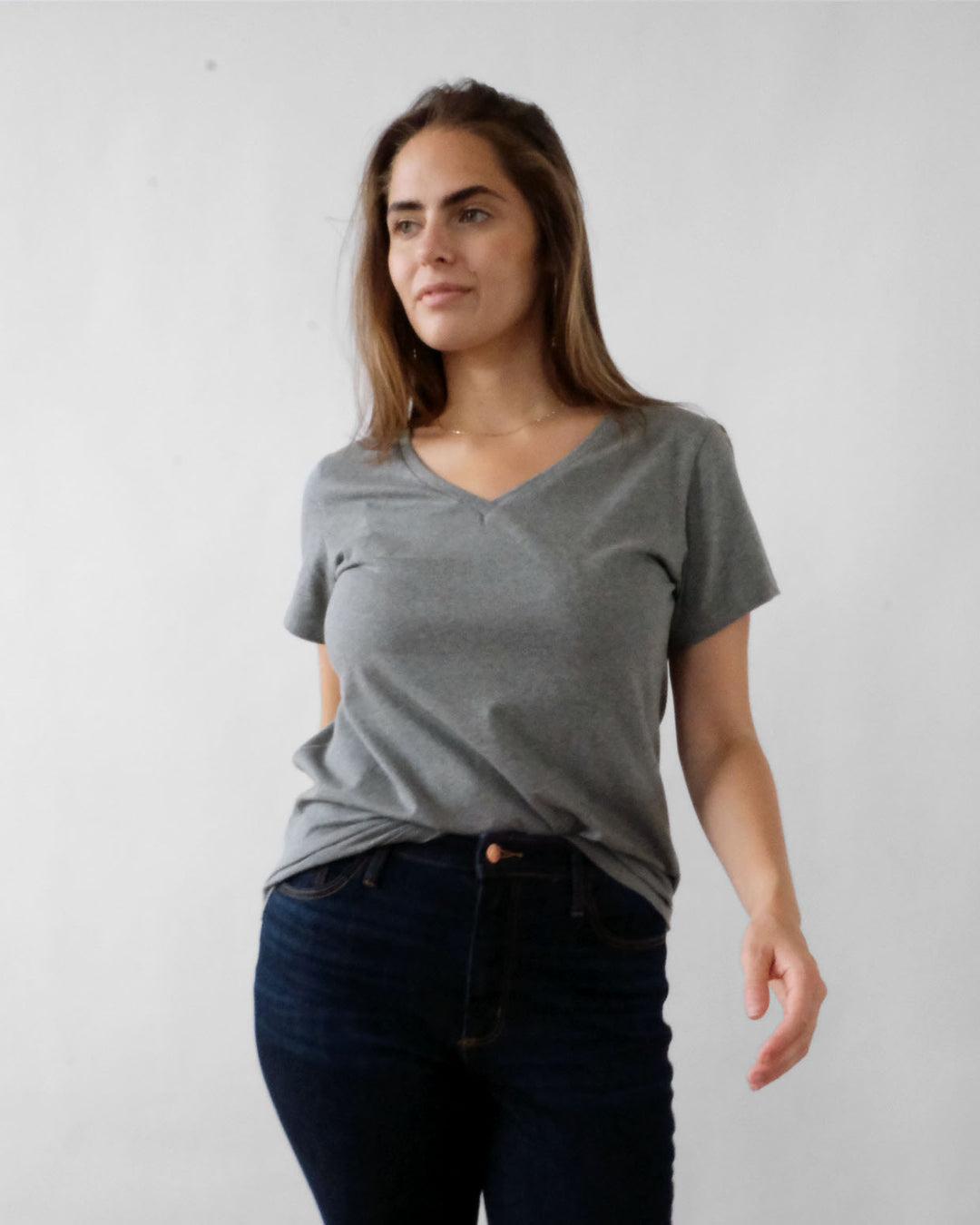 The essential v-neck tee where you'll need more than one color. The fabric will last forever, so the value is fantastic.