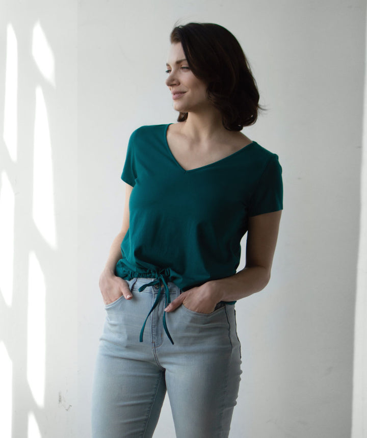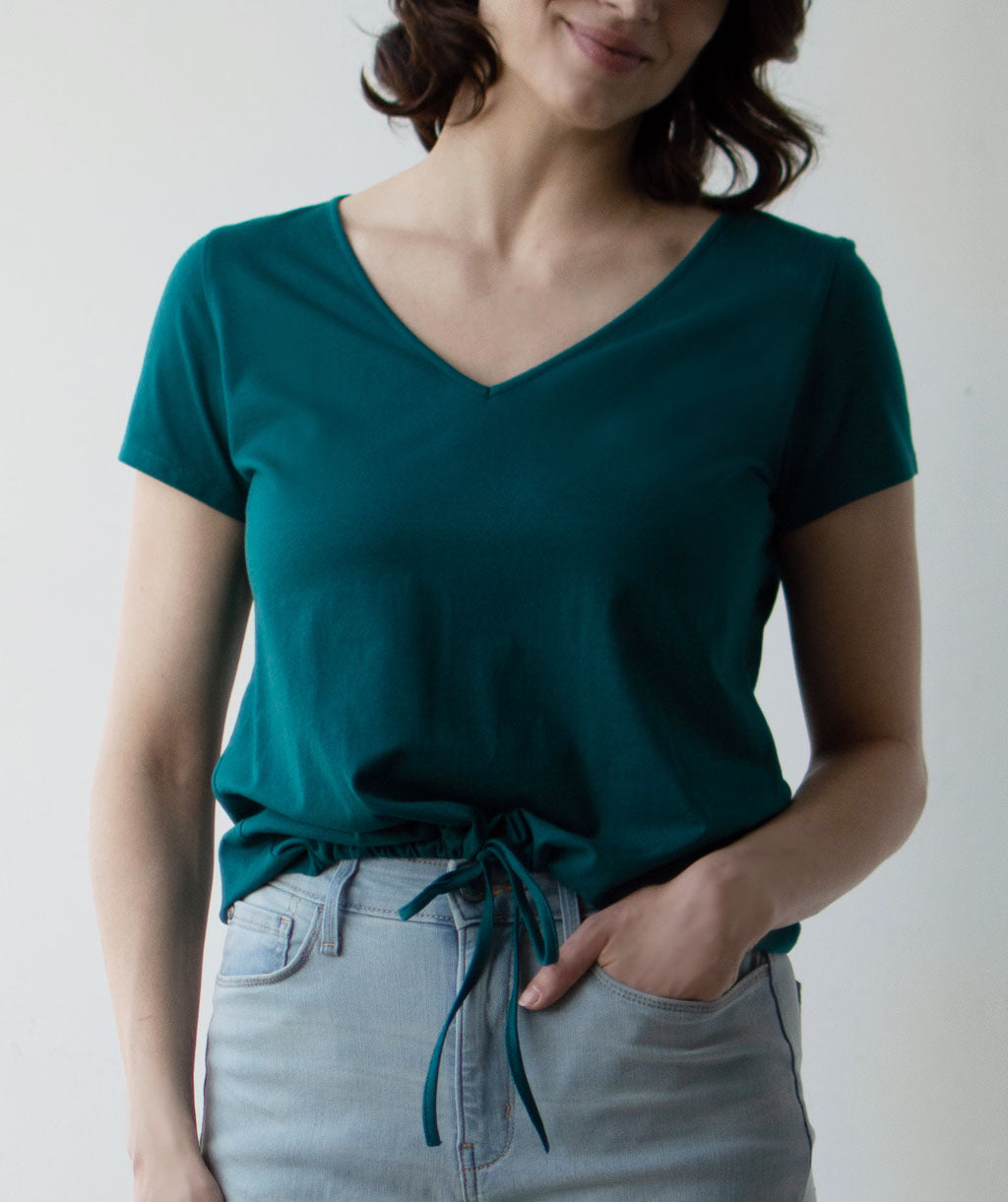 - Drawstring can be worn relaxed, or it can be cinched tighter to raise the top higher for shorter torsos or high-waisted outfits.