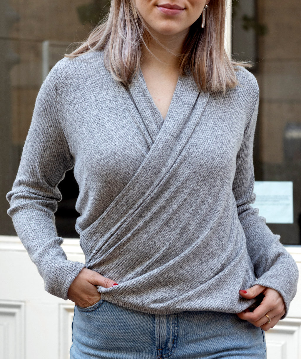 LOIDA brushed draped top in Grey Heather