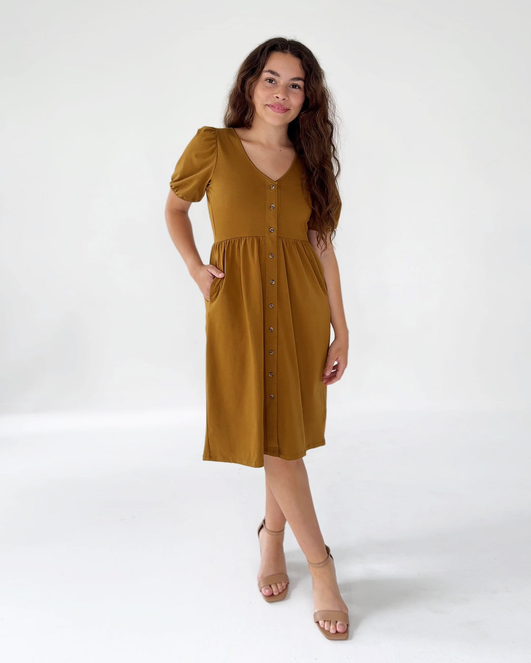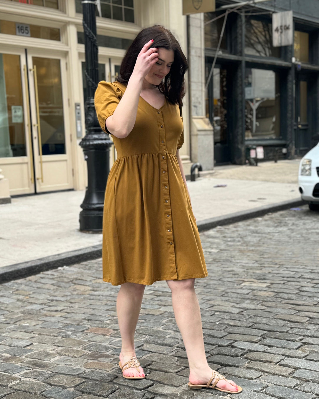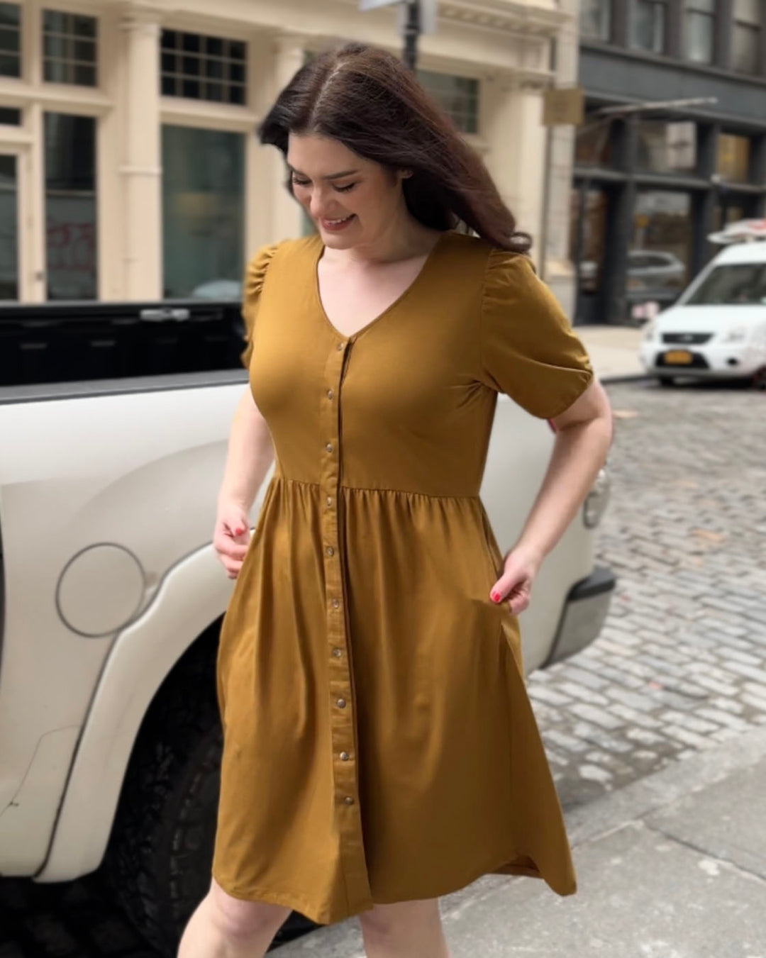 Perfect for nursing moms, this dress features convenient buttons, pockets for storing small essentials, and a flattering fit and flare cut. Enjoy arm coverage and a comfortable stretchy sleeve hem while looking elegantly stylish.