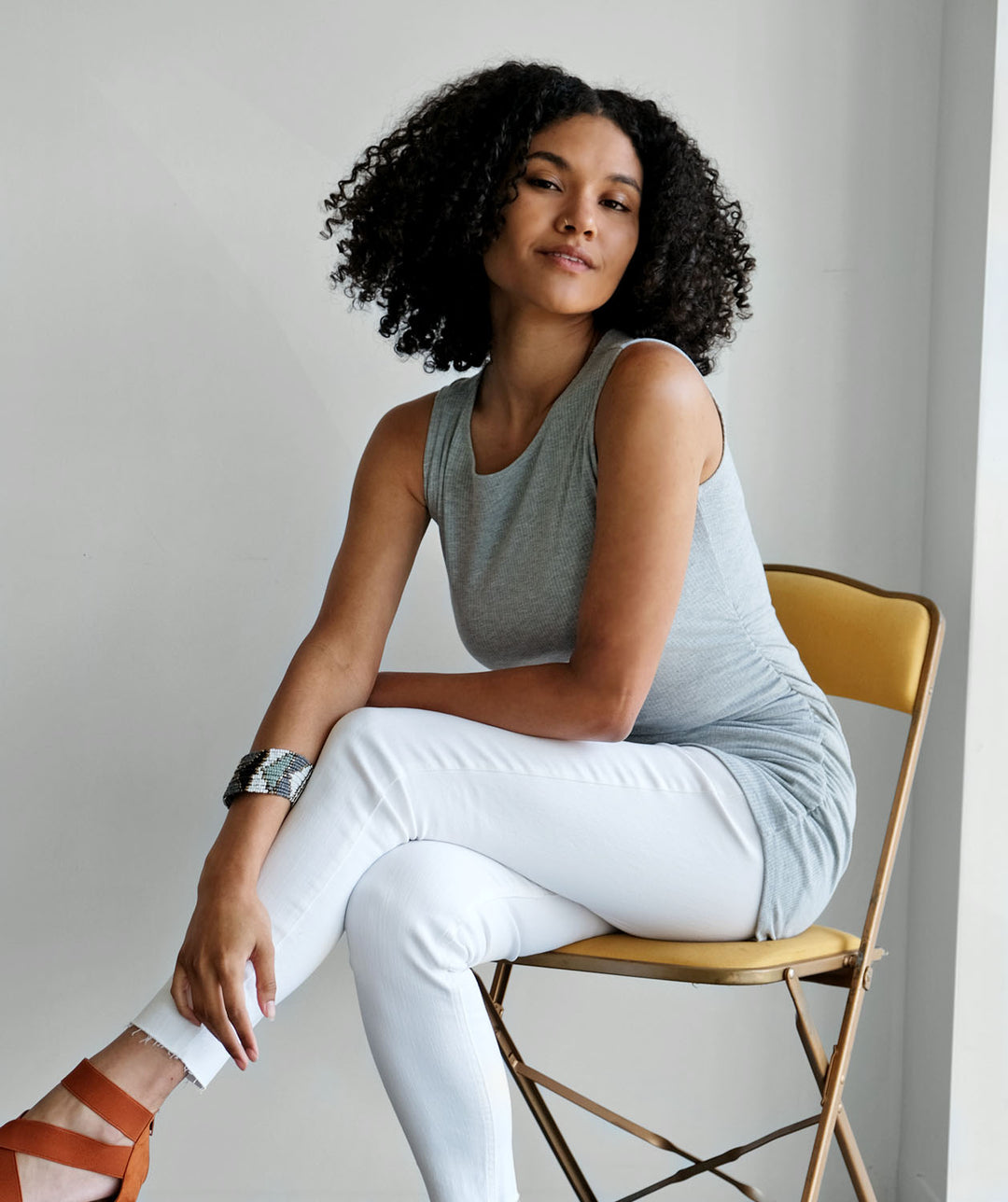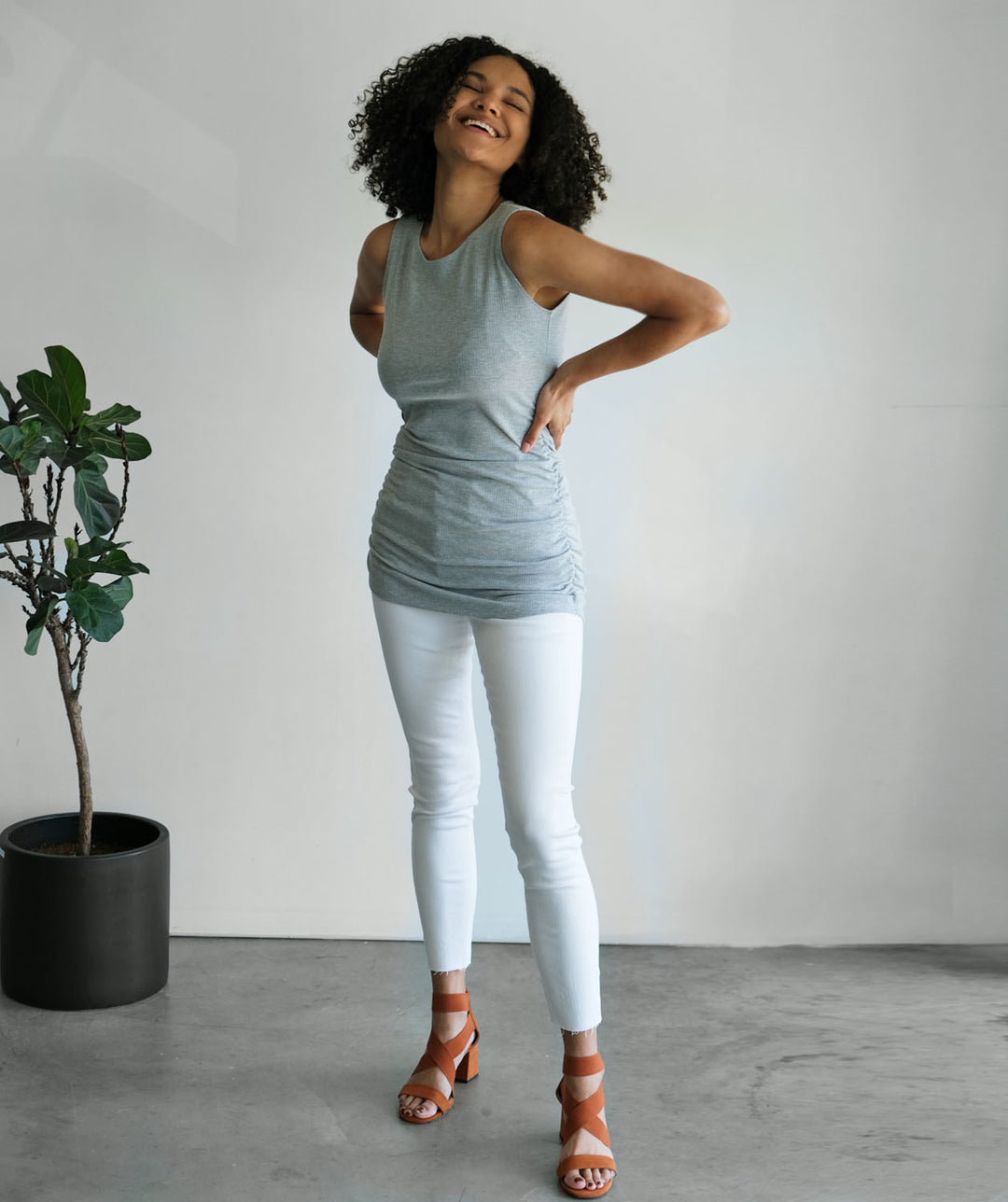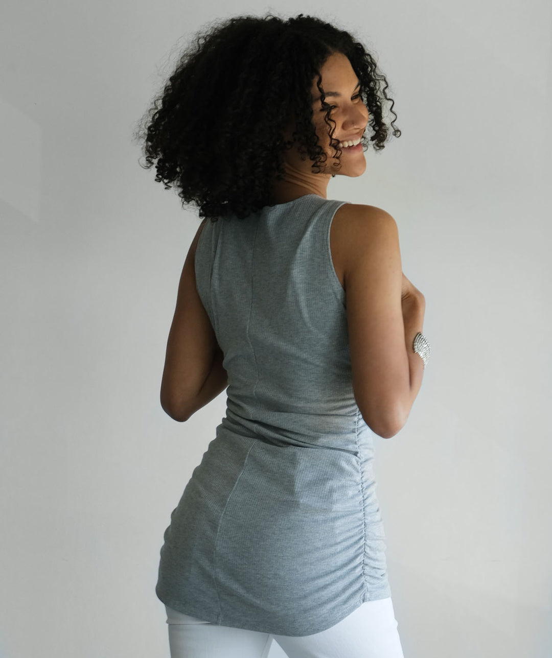 - In rib knit fabric, this tunic is made to pop your curves. The gathered side seams keep the tunic from accentuating too much.