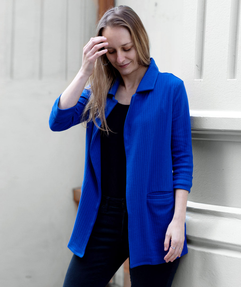 - Blazer covers the bum, with a length of 30" from top of shoulder to hem.