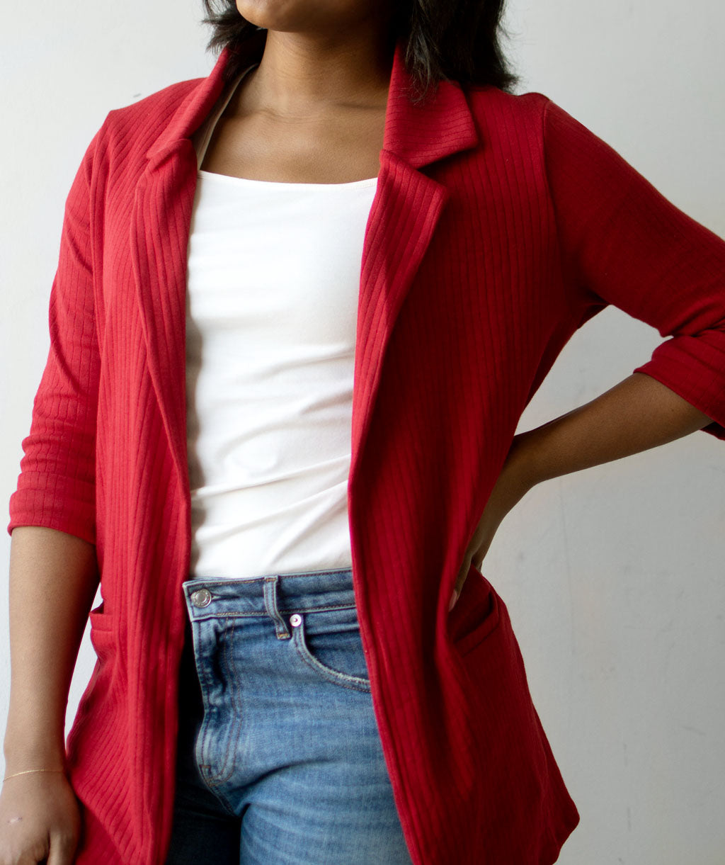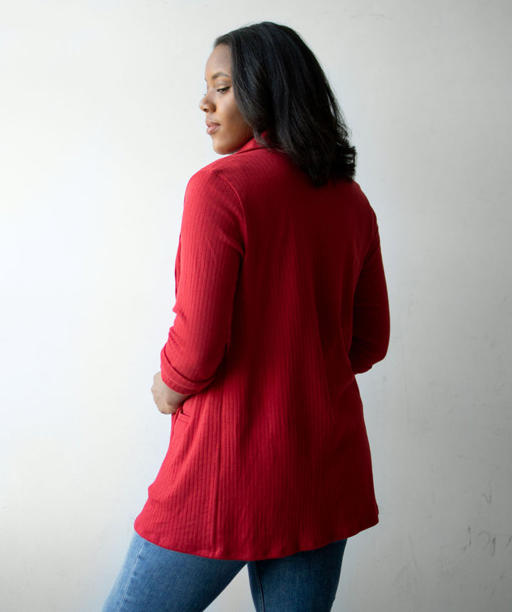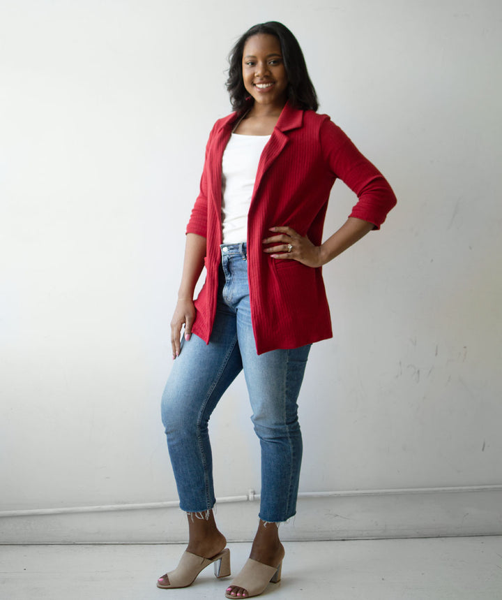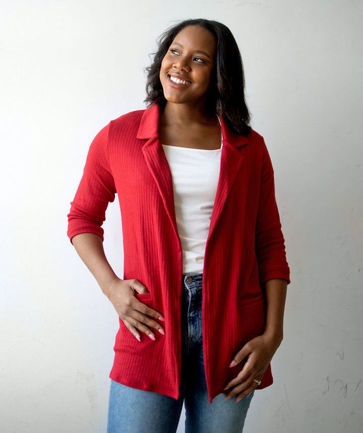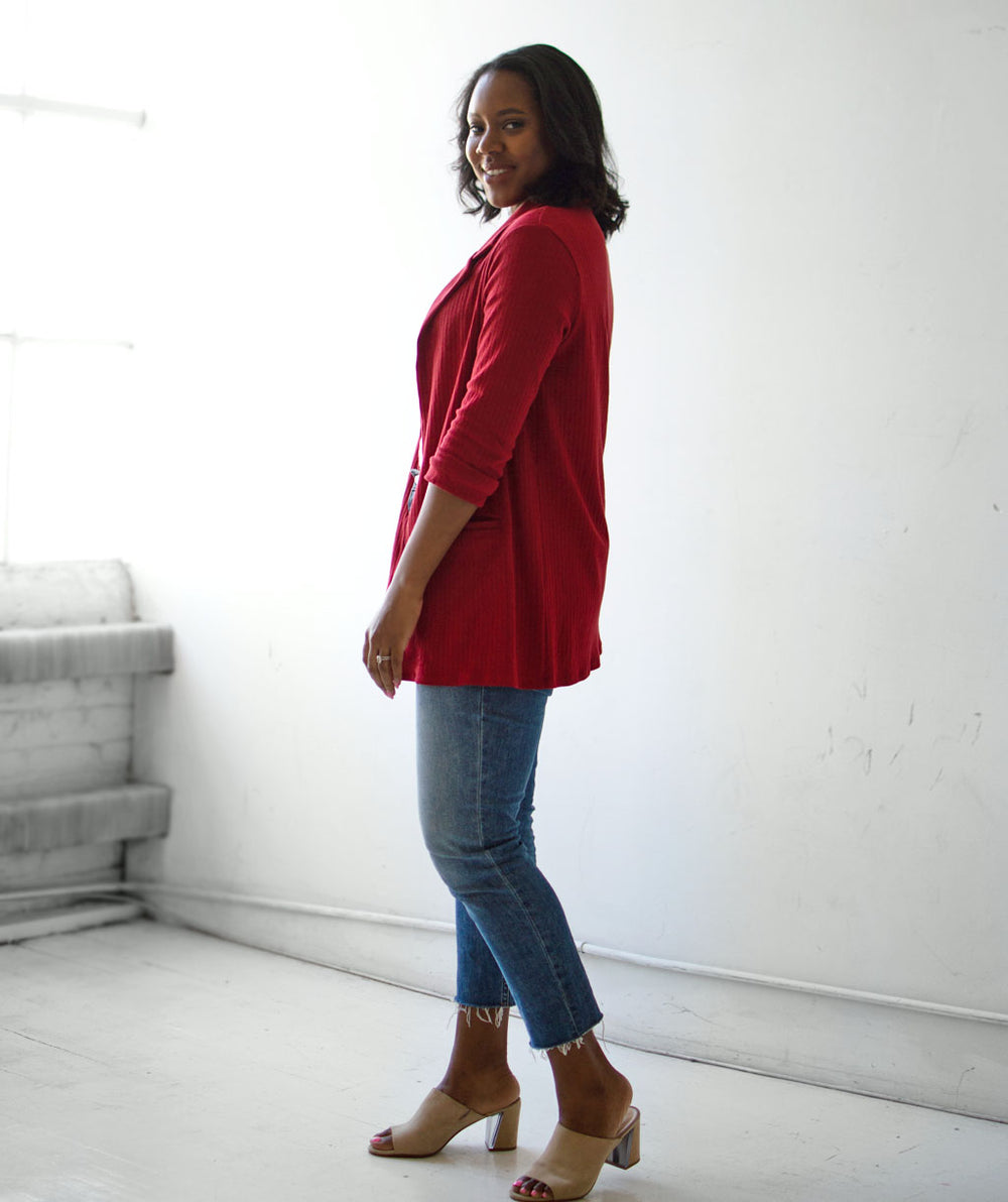 MAE rib knit blazer in Red