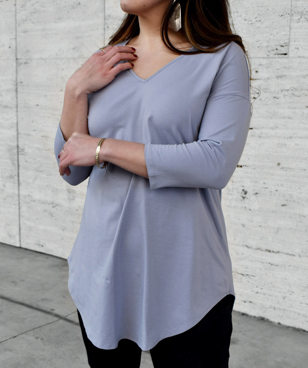 Flowy 3/4 sleeve v-neck tunic.