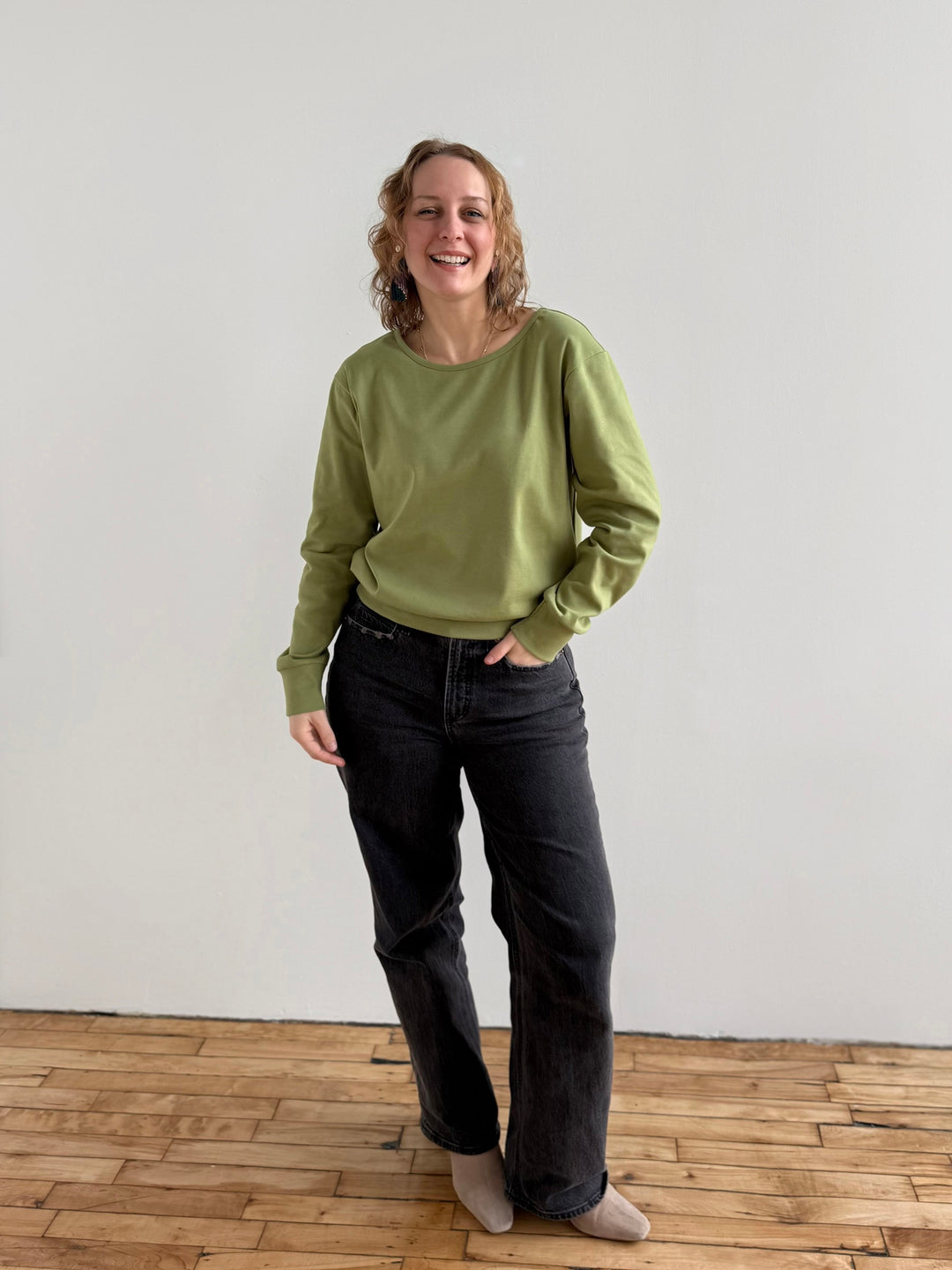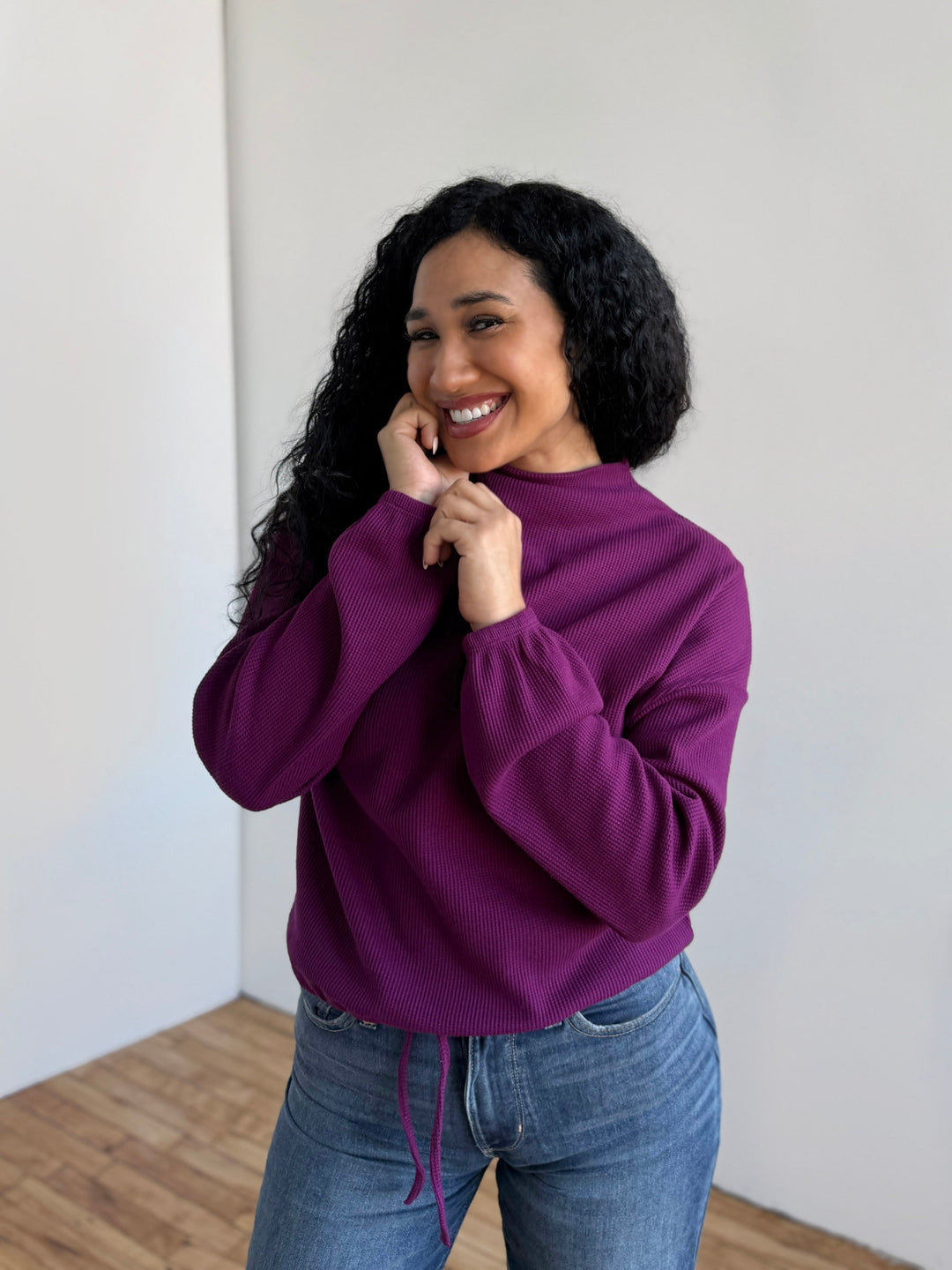 • Don't overthink it.  We have a low return rate overall because most designs are flattering in a size up or down. Our knit fabrics drape in all the right ways!