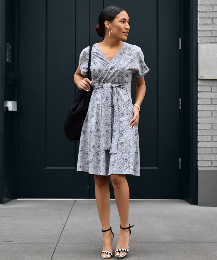 - Looks like a wrap dress, but it's fuss free. The mock wrap gives this dress a lightweight feel.