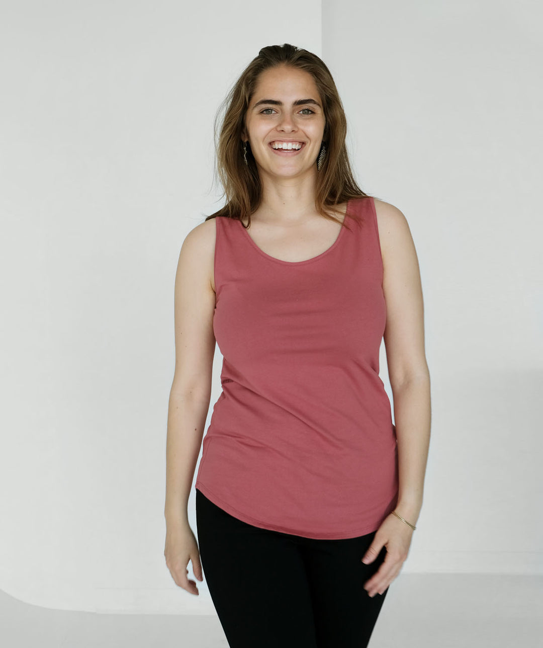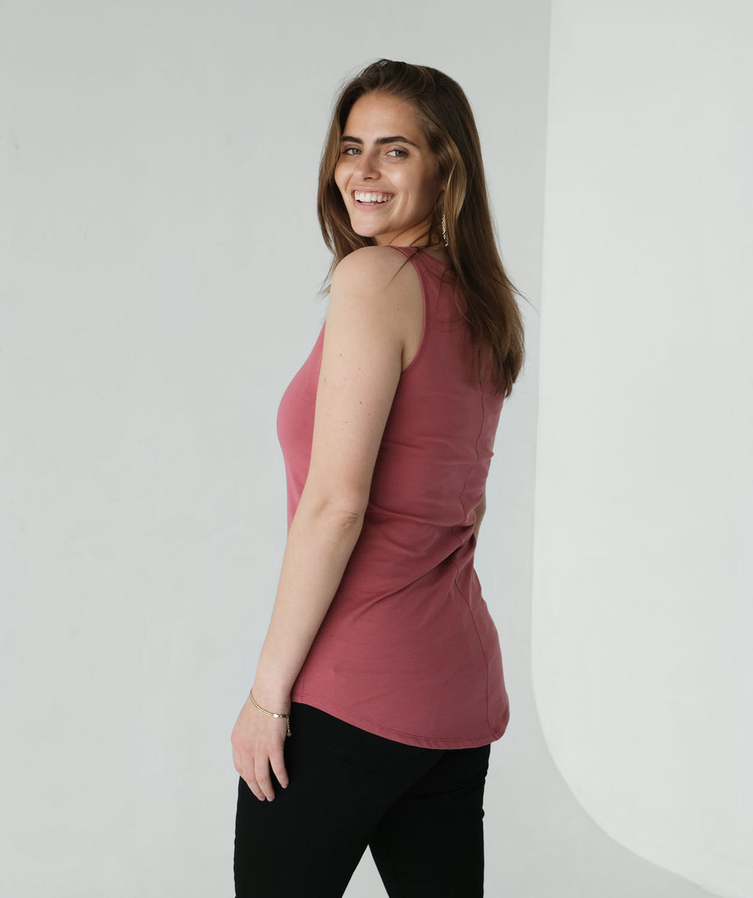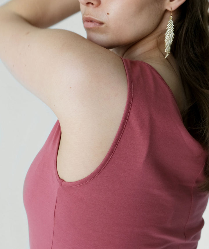 The meaning of Namra in Nepalese is loyal - exactly why we named it for our modest summer staple. Wear a normal bra. Everything stays in place, even when you bend over and raise your arms.