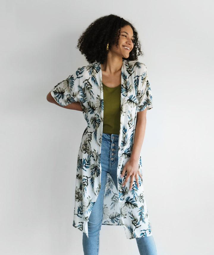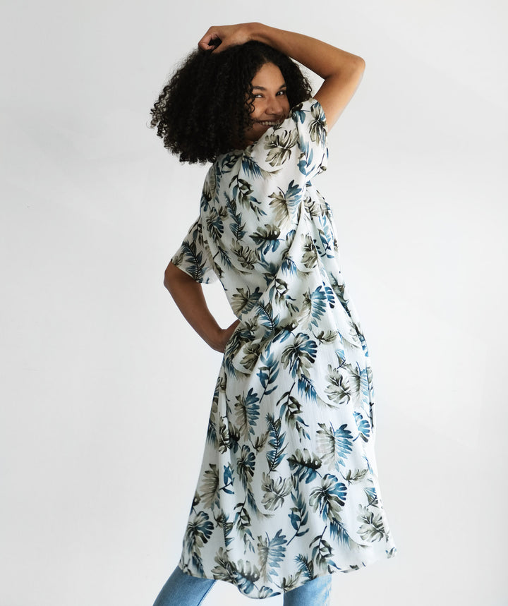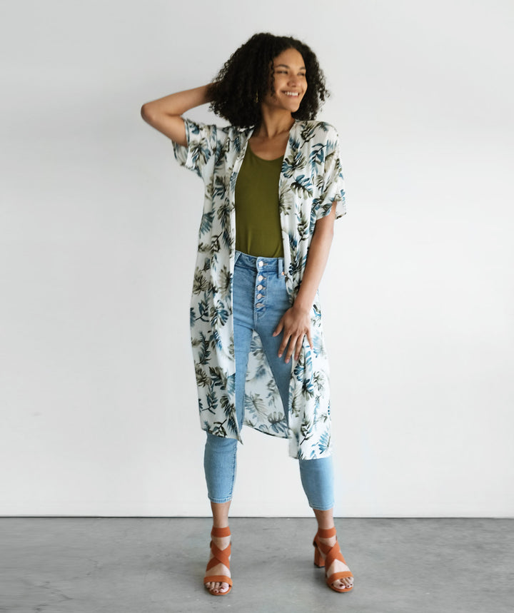 - Intended to be flowy since fabric is non-stretch, and front is open.