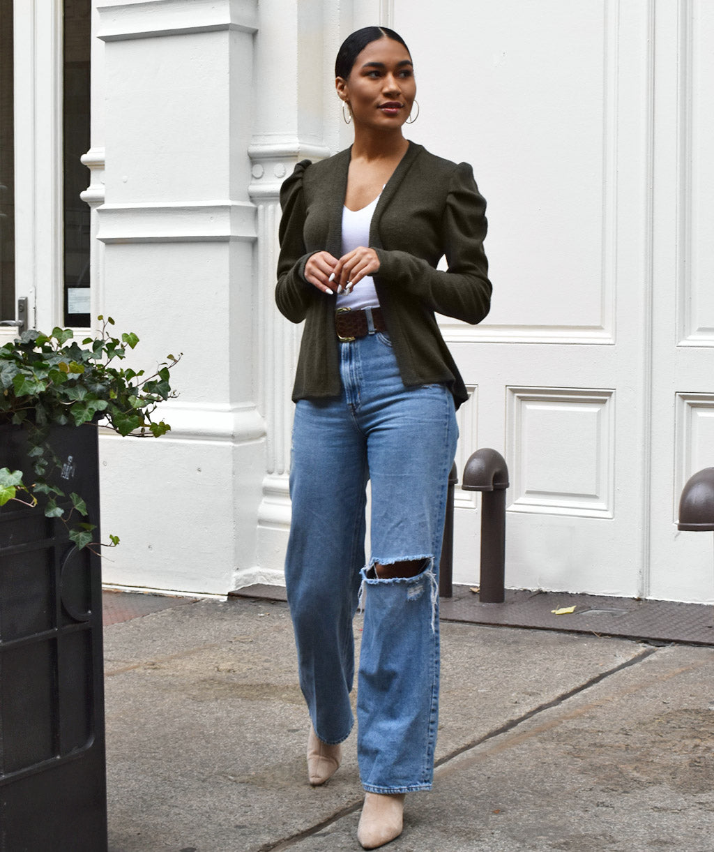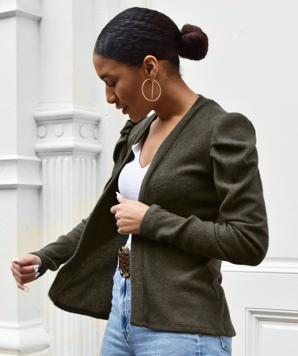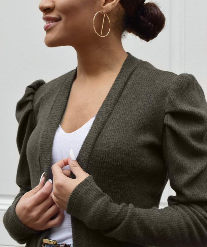- For a warm sweater fabric, the cardigan is lightweight and stretchy.