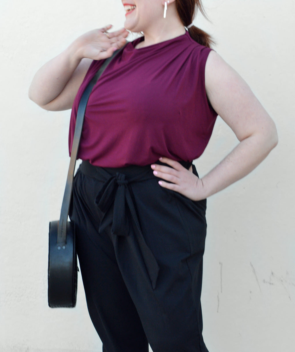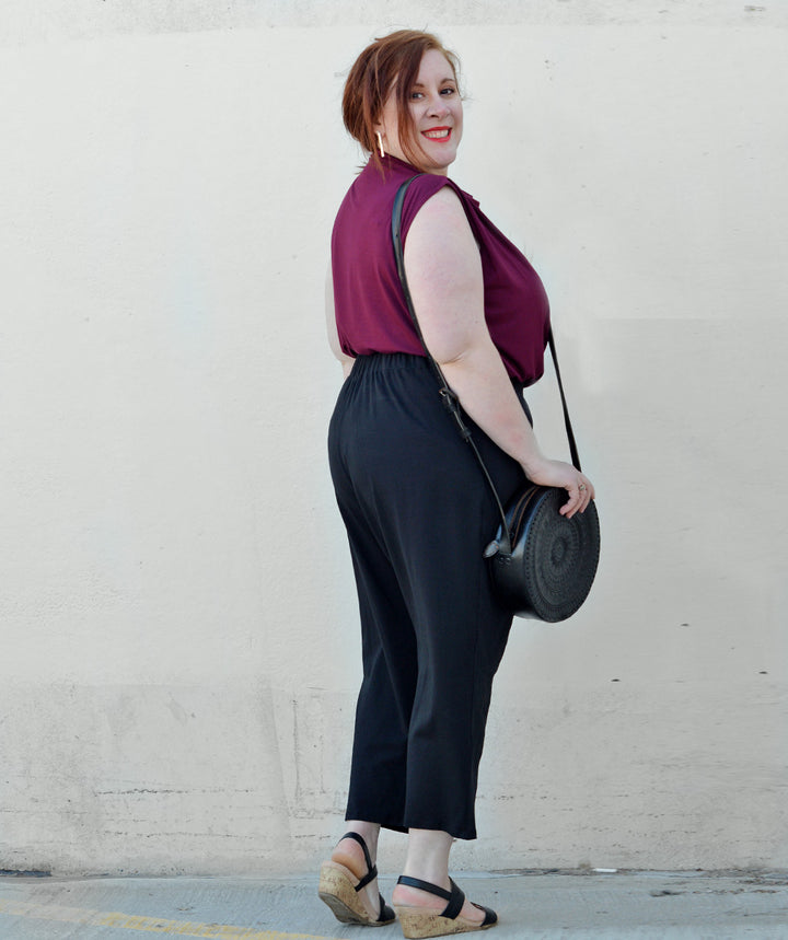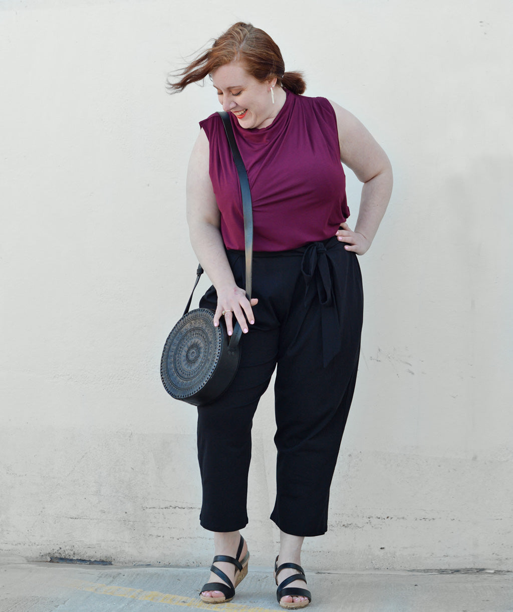 • Don't overthink it.  We have a low return rate overall because most designs are flattering in a size up or down. Our knit fabrics drape in all the right ways!