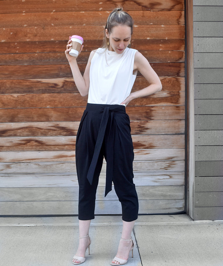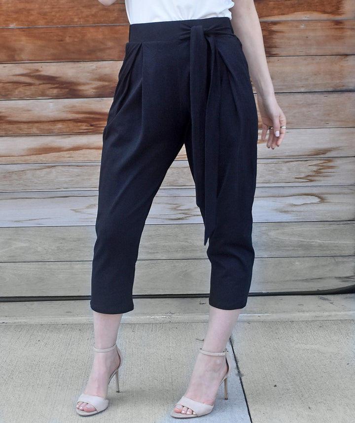 • Pants have a tapered cut. There is room around the hip due to the pleats in the front and the gathering at the back.