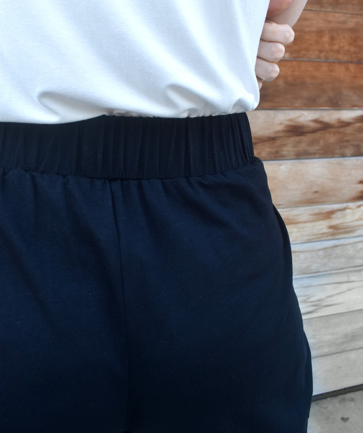 • High-waist pull on pants. Elastic waist circumference is the same as the waist measurements on our size chart.