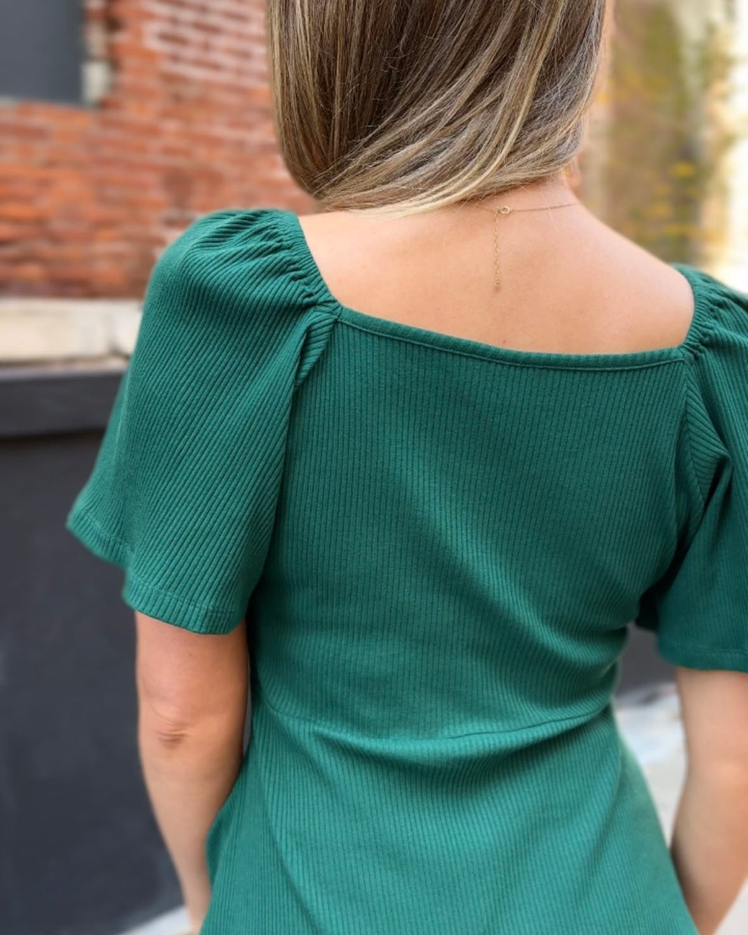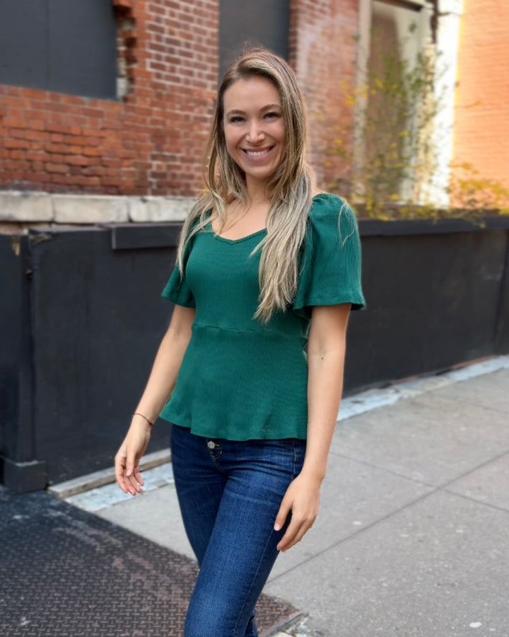 A contemporary classic, this rib knit top exudes elegance with its breathable cotton fabric, fit and flare cut, and flowy sleeves. Its luxe rib knit texture brings an air of sophistication to any look.