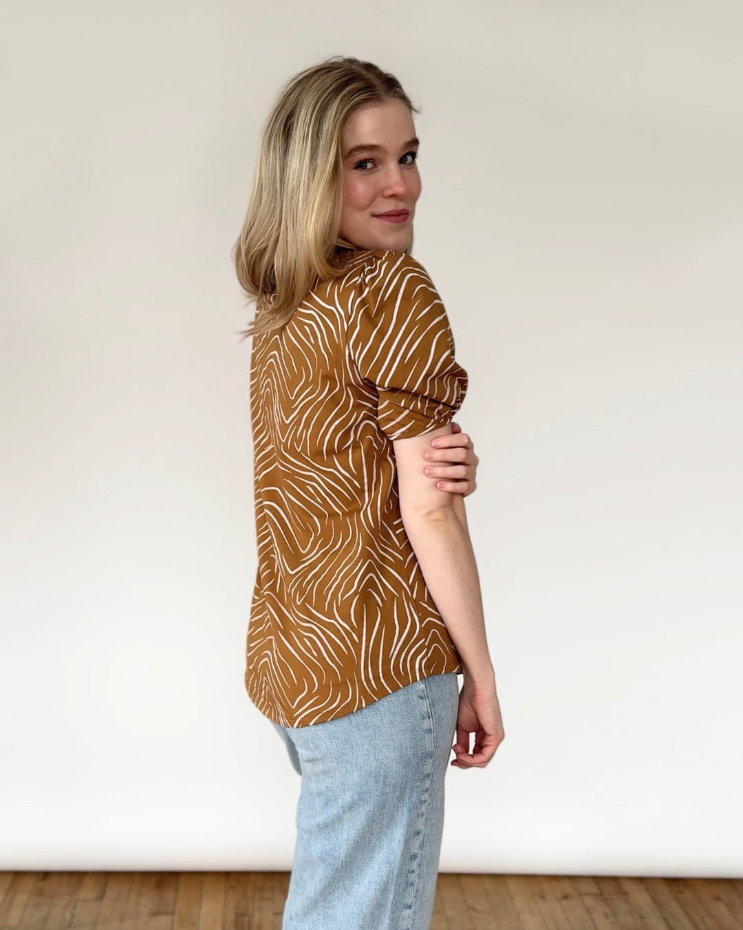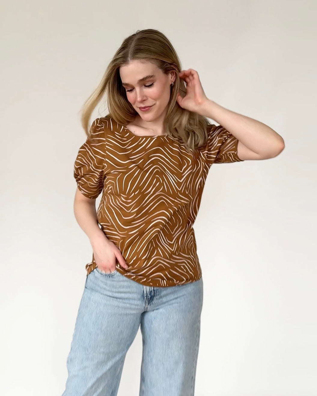 • Don't overthink it.  We have a low return rate overall because most designs are flattering in a size up or down. Our knit fabrics drape in all the right ways!