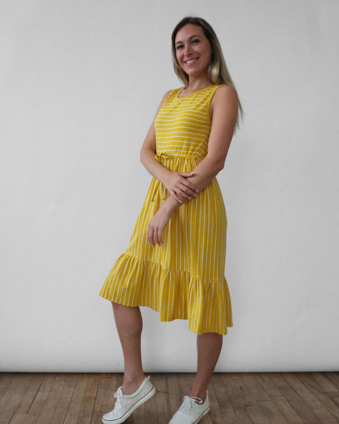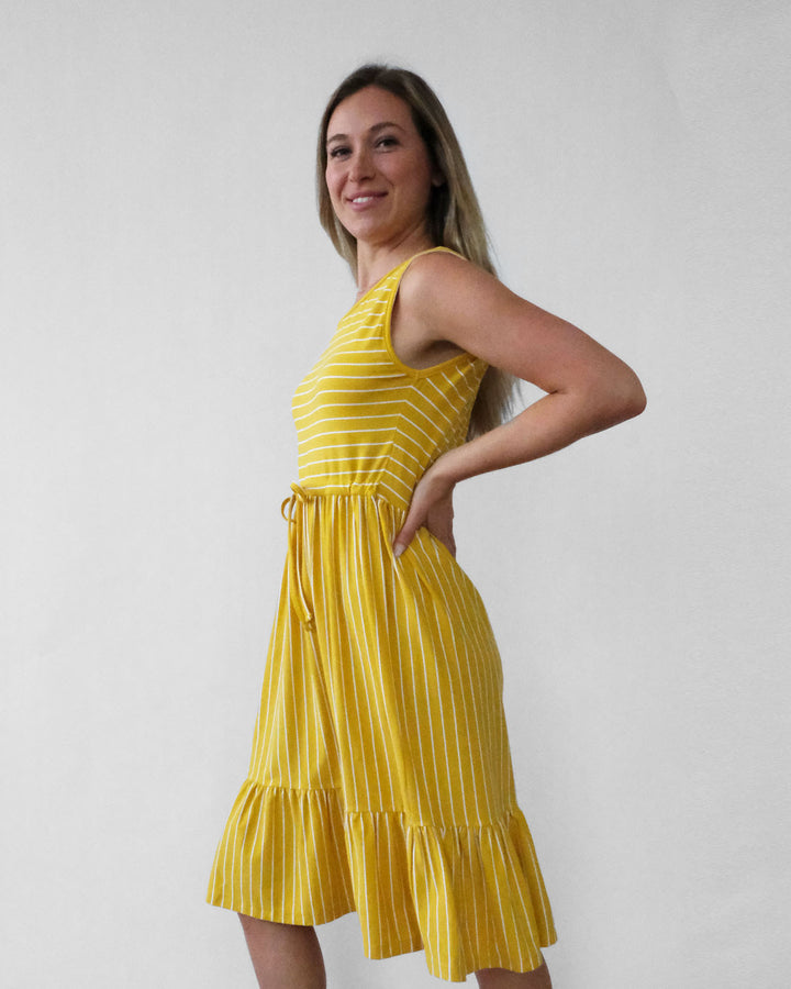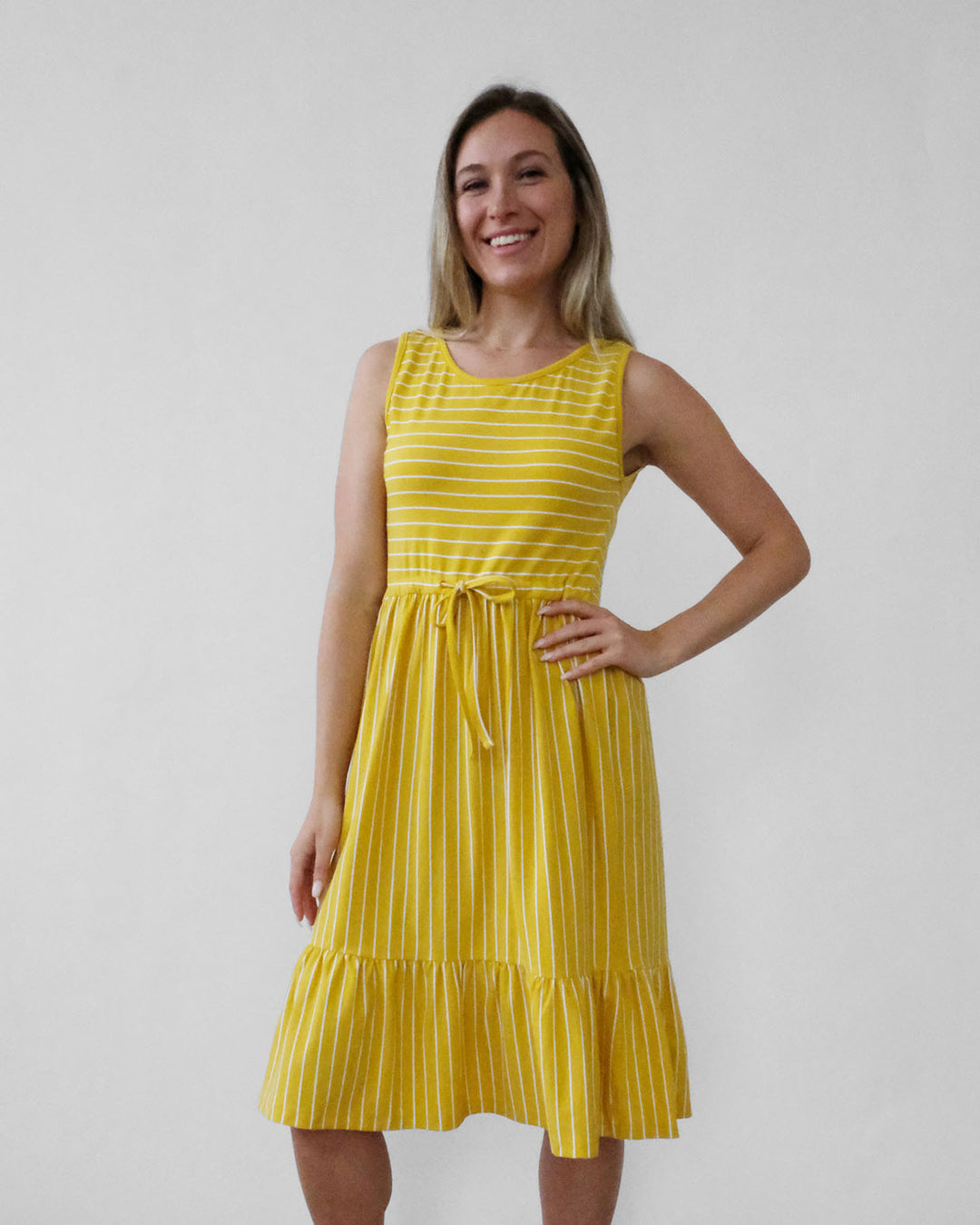 • Don't overthink it.  We have a low return rate overall because most designs are flattering in a size up or down. Our knit fabrics drape in all the right ways!