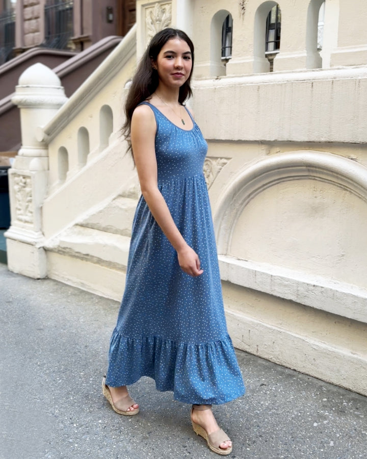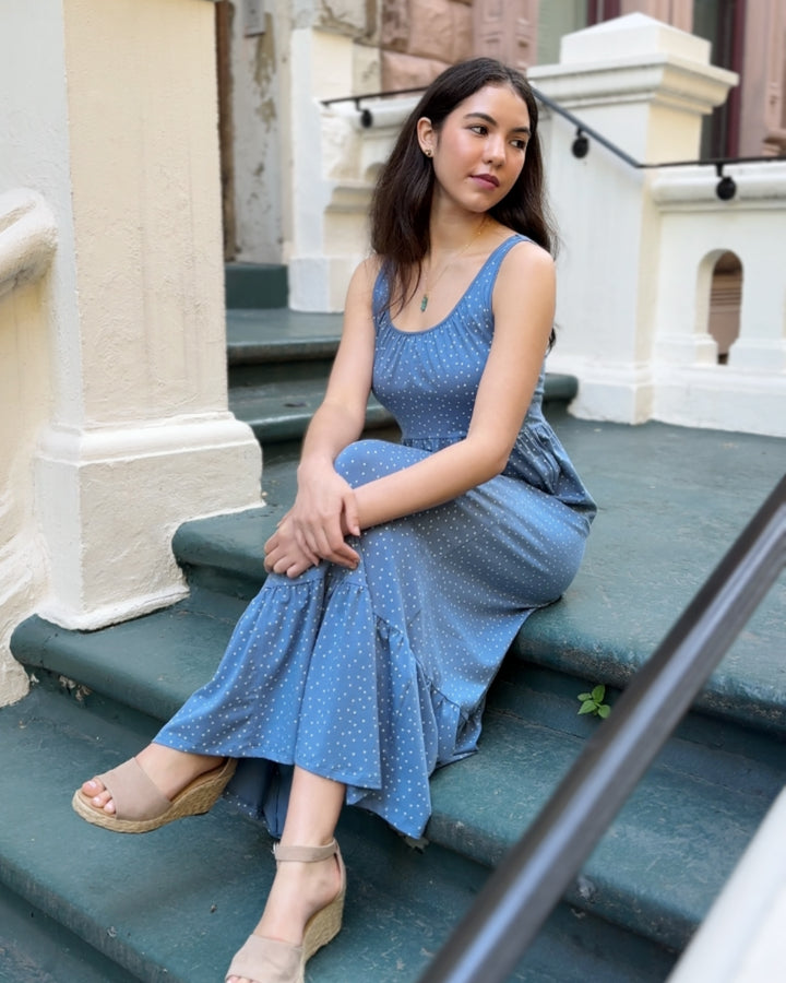 SARITA polka dot dress in Elemental Blue/White