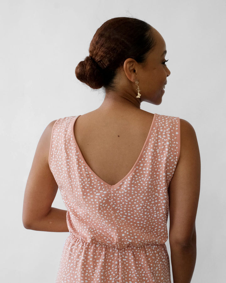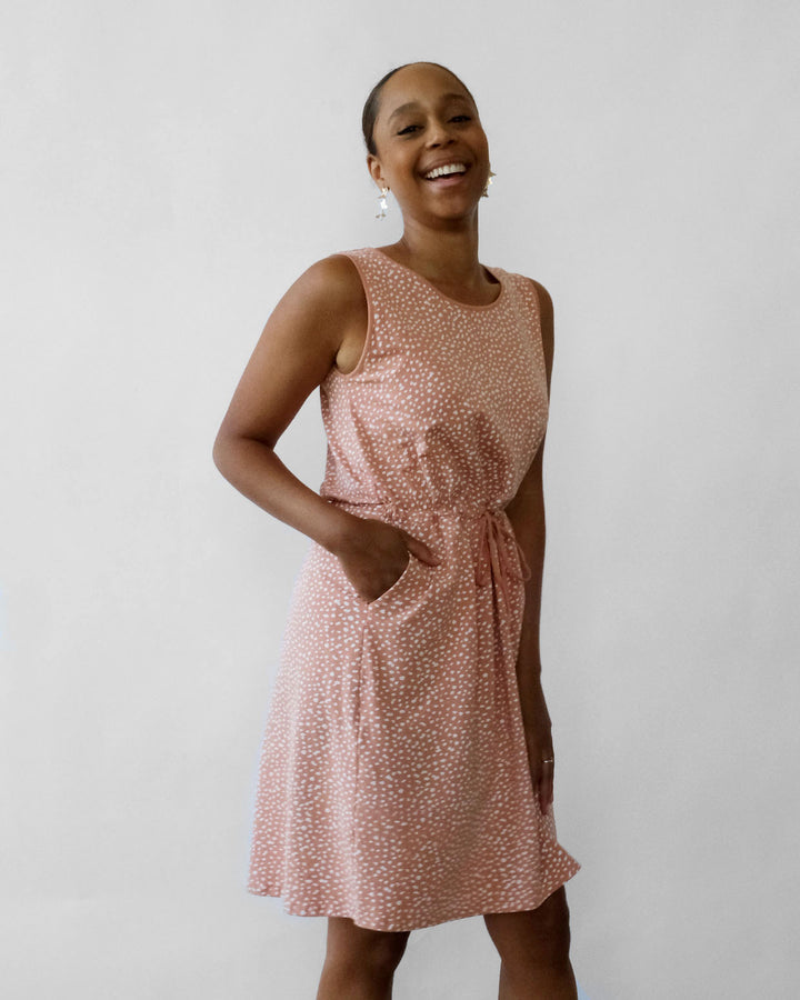 • Don't overthink it.  We have a low return rate overall because most designs are flattering in a size up or down. Our knit fabrics drape in all the right ways!