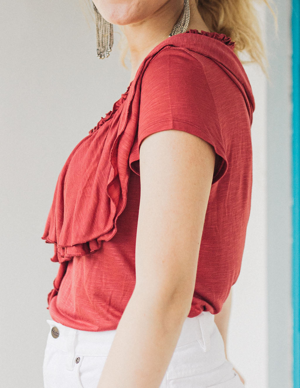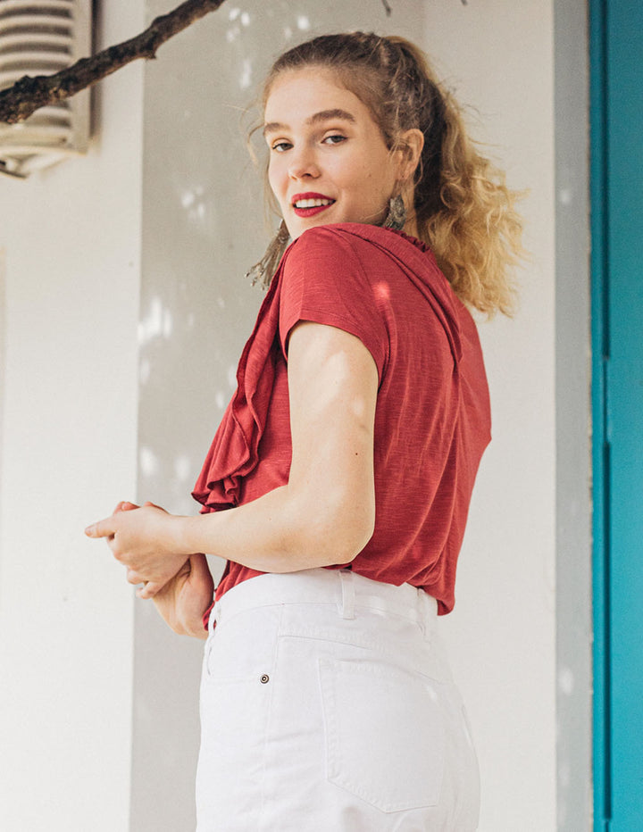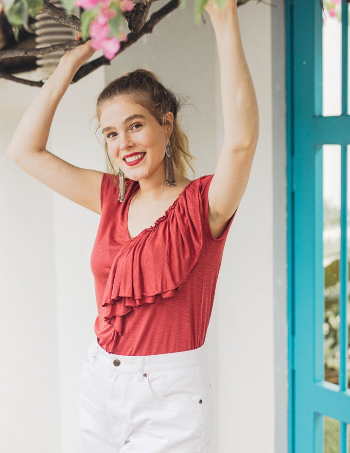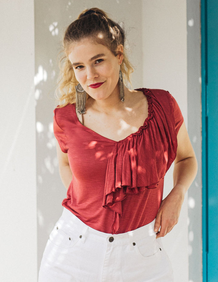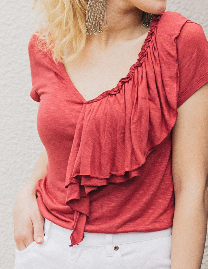 KELSEY double ruffle tee in Red Spice