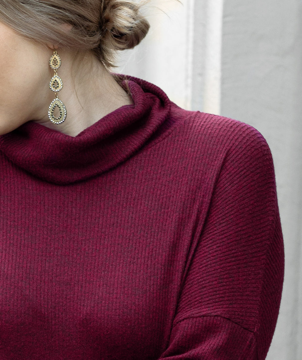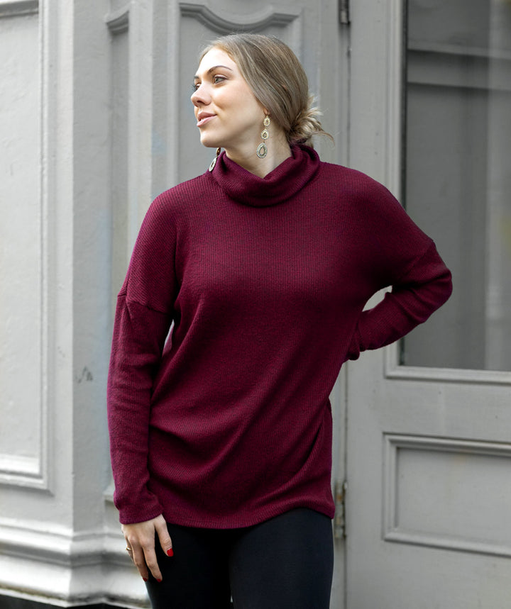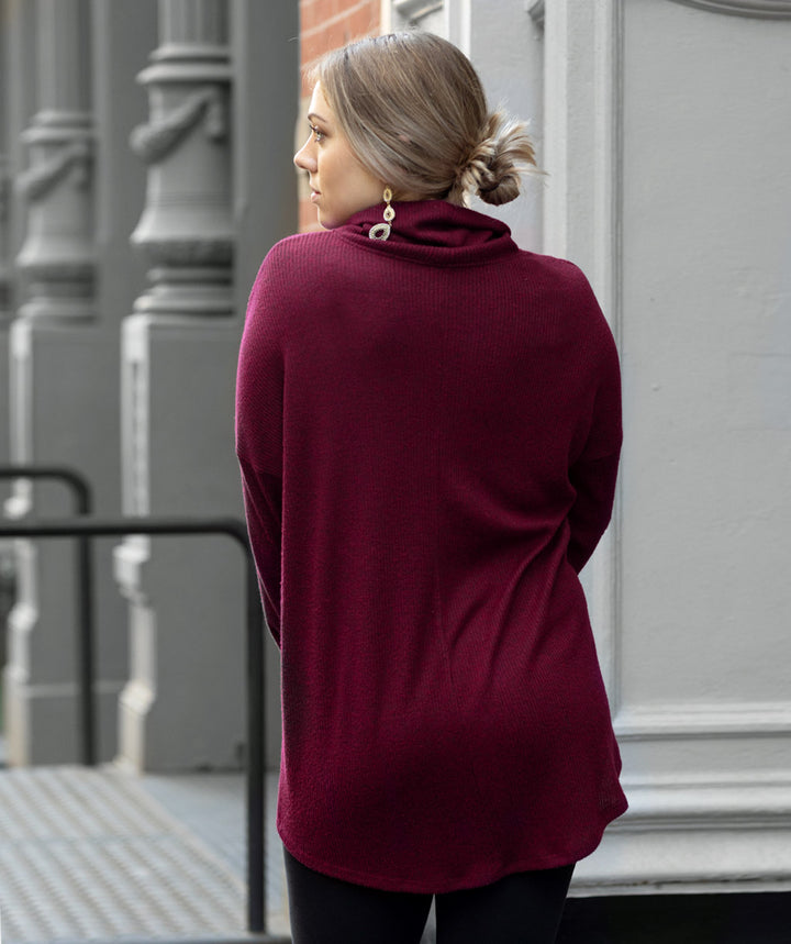 Soft sweater-like rib knit fabric makes this your most cozy tunic. Wear with leggings and boots for an everyday look, then snuggle up with hot tea at home.