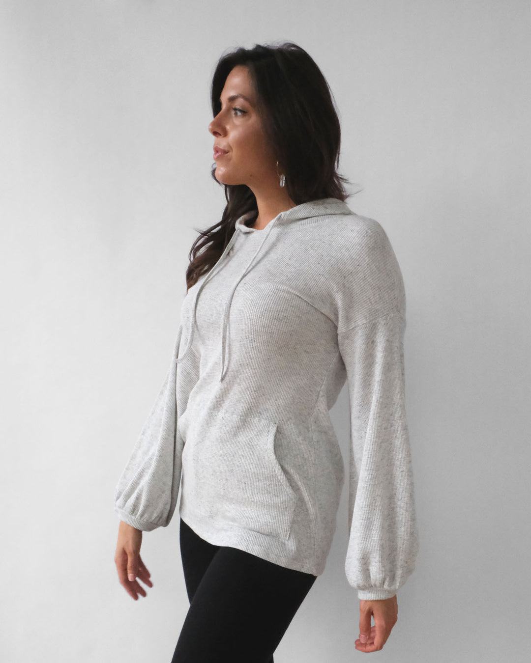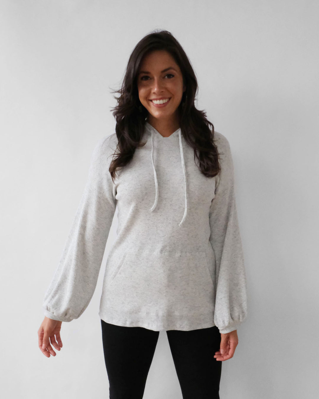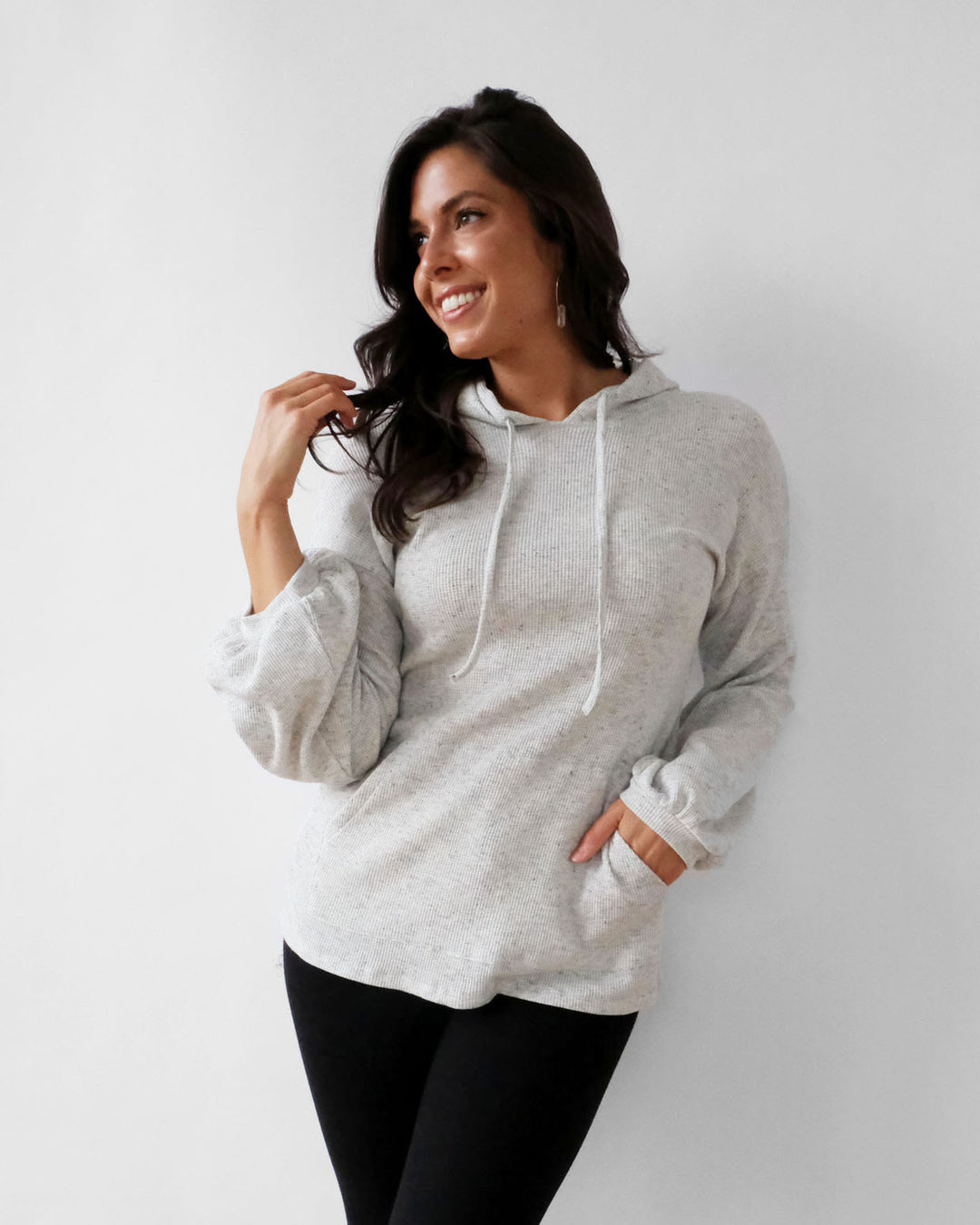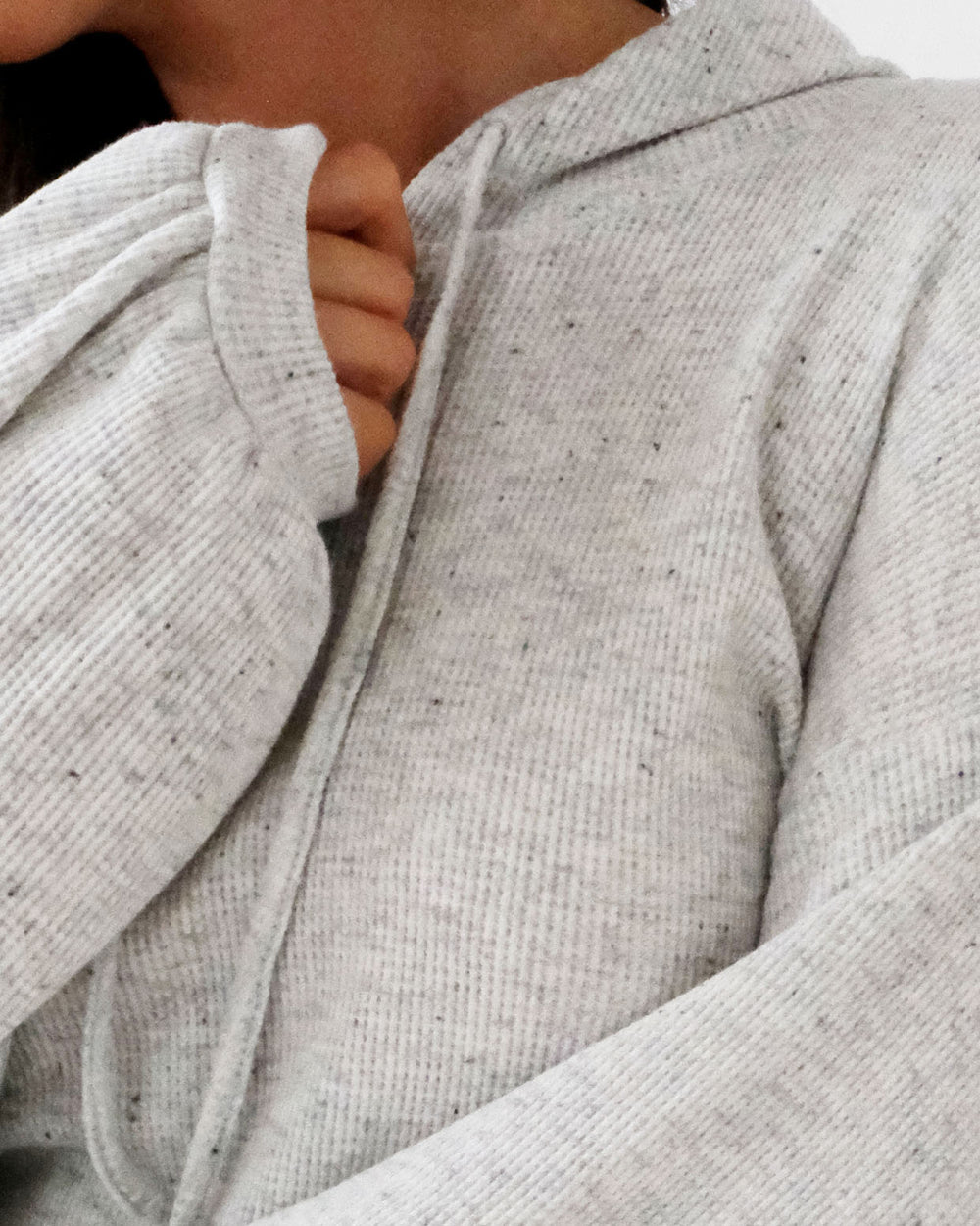 Top-quality cotton waffle knit hoodie. Live in this tunic with all the feminine details.