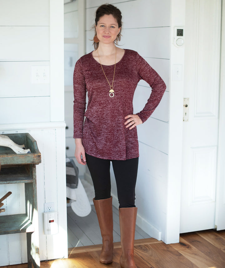 - Tunic has long fitted sleeves and gently relaxed body.